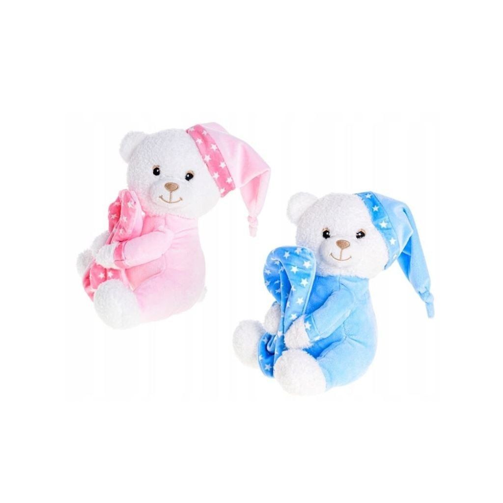 Plyšový medveď s hrkálkou je jemná a príjemná hračka pre najmenšie deti, ktorá pri pohybe vydáva jemný hrkavý zvuk. Mäkký materiál je ideálny na maznanie a podporuje zmyslové vnímanie aj rozvoj jemnej motoriky. Vďaka roztomilému dizajnu sa stane obľúbeným spoločníkom na hranie aj uspávanie. Dostupný v modrej a rúžovej farbe. Cena za kus. Rozmer (cm)