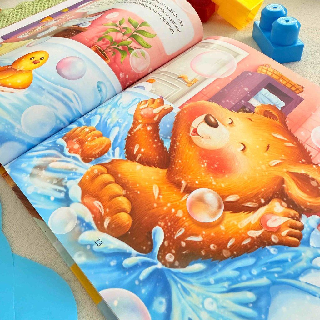 Medvedík Timo si myslí, že kúpanie je nudné a strašidelné zároveň – voda je studená, mydlo štípe a vaňa je veľmi veľká. Pomocou mamičky sa však vydá na čarovné dobrodružstvo plné vôní, bubliniek, smiechu a fantázie. Objaví, že aj kúpanie môže byť radosťou a že táto rutina sa môže premeniť na hru. Príbeh pomáha deťom prekonať strach z kúpeľa, buduje pozitívny vzťah k hygiene a premieňa každodennú rutinu na zábavné dobrodružstvo. Rozmer (cm)