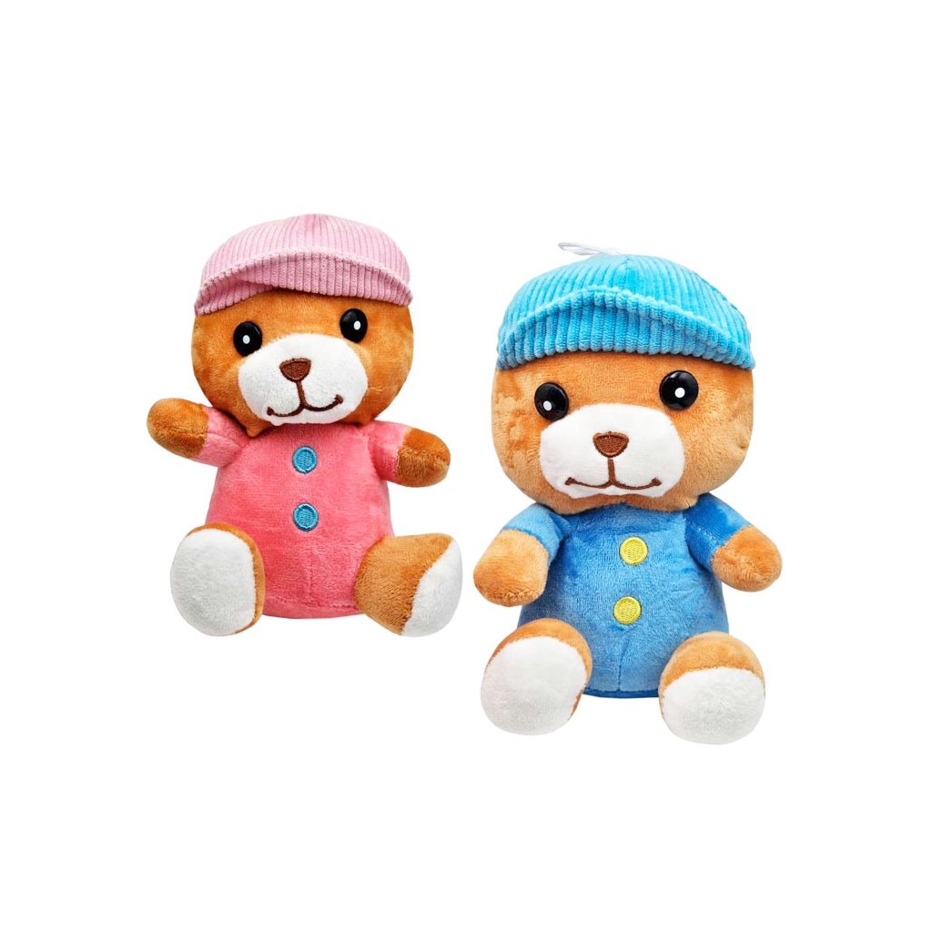 Plyšový 19cm medvedík v šiltovke. Mix dvoch farieb – ružový alebo modrý. Rozmer (cm)
