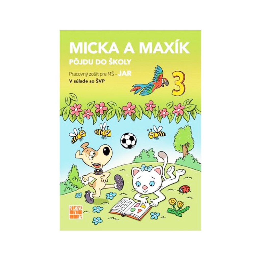 Micka a Maxík idú do školy Jar, je zameraný na predškolskú prípravu. Obsahuje rozmanité úlohy. Pripomenú si základy bezpečného správania v prázdninovom období a osvoja si poznatky o jari. Letný zošit sa sústreďuje aj na rozvoj rečových schopností. Rozsah je 16 strán. Cena je za kus. Vhodné pre deti vo veku 3+ rokov. Rozmer (cm)