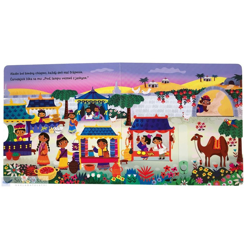 Minirozprávky - Aladin, leporelo s pevnými stránkami a pohyblivými obrázkami je určené deťom od jedného roka a nájdete v ňom krátku veršovanú rozprávku Aladin. Má 10 strán. Rozmery produktu sú 18x18cm. Rozmer (cm)