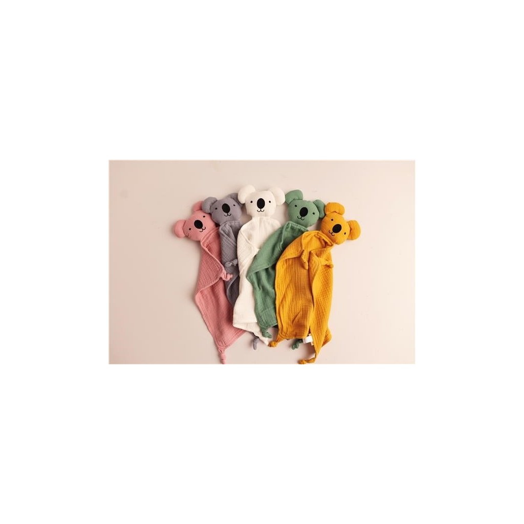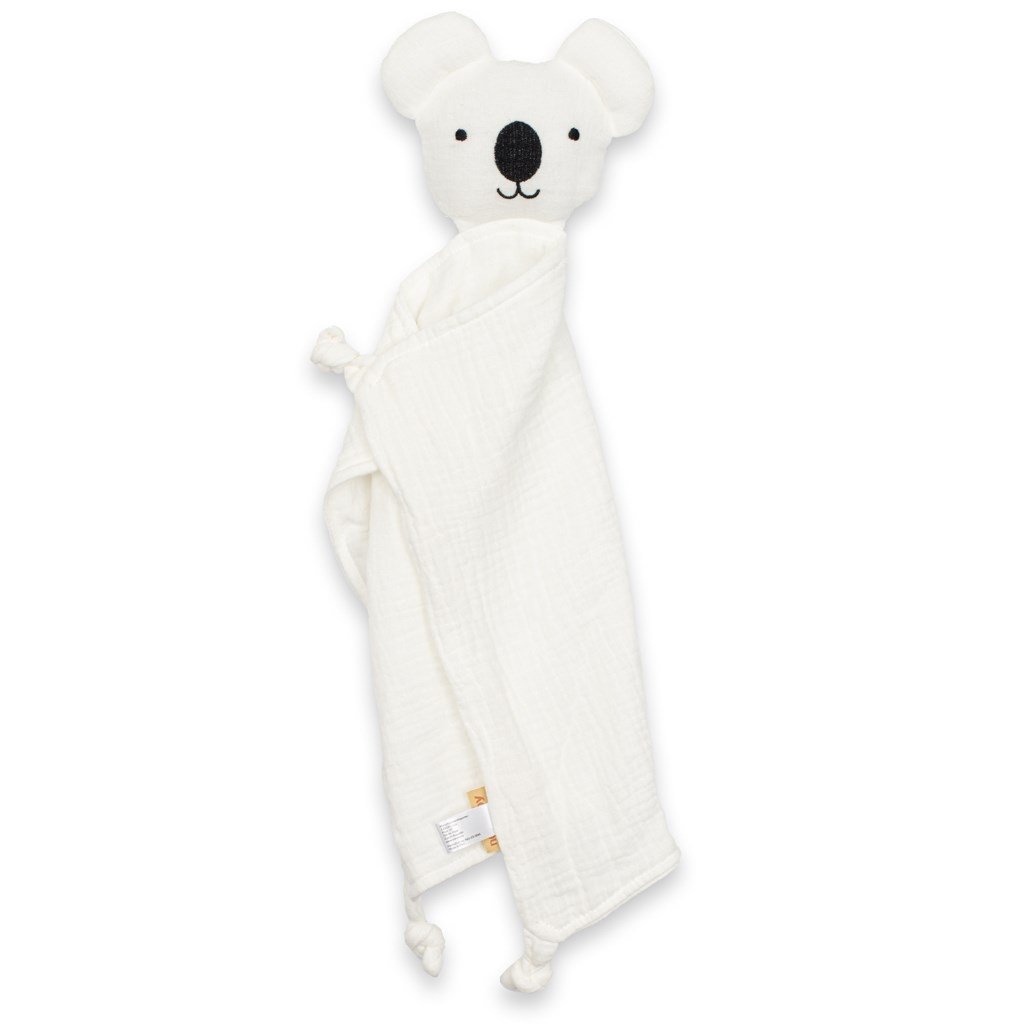 Mušelínový usínáčik New Baby Koala je to ideálna plyšová hračka pre naše dieťa od prvých dní života. Vyrobená z mäkkej a na dotyk príjemnej mušelínovej tkaniny. Poskytuje pocit bezpečia a uľahčuje zaspávanie. Mäkký vzhľad a estetické farby zabezpečujú estetický a minimalistický dizajn. Plyšová hračka sa dokonale hodí k našim ostatným mušelínovým výrobkom a vytvára krásnu súpravu, ktorú možno darovať ako darček na oslavu narodenia dieťaťa.
