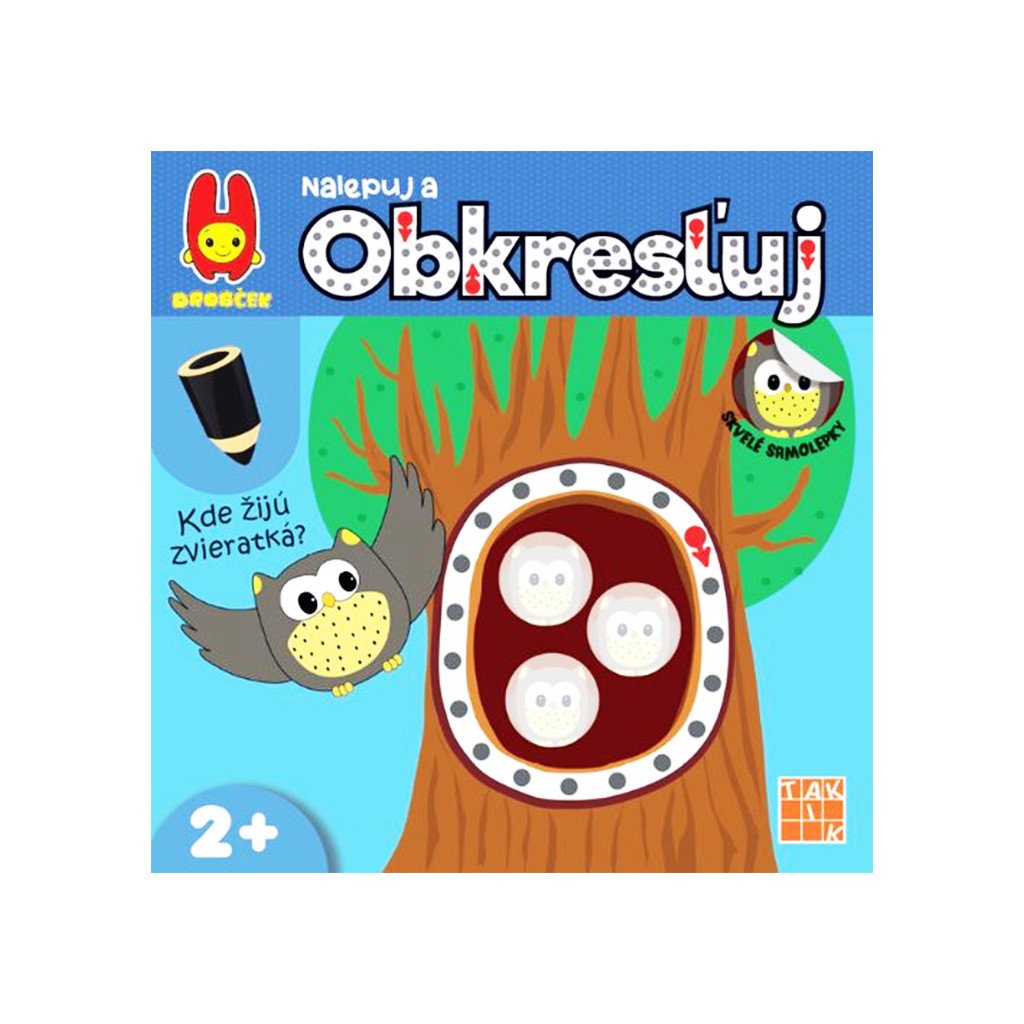 Nalepuj a obkresľuj Kde žijú zvieratká?, prepája dvojicu obľúbených detských aktivít – nalepovanie a obkresľovanie. Deti prostredníctvom samolepiek a spájania bodiek spoznajú veselých zvieracích kamarátov a domčeky, v ktorých bývajú. Rozsah je 16 strán. Cena je za kus. Vhodné pre deti vo veku 3+ rokov. Rozmer (cm)