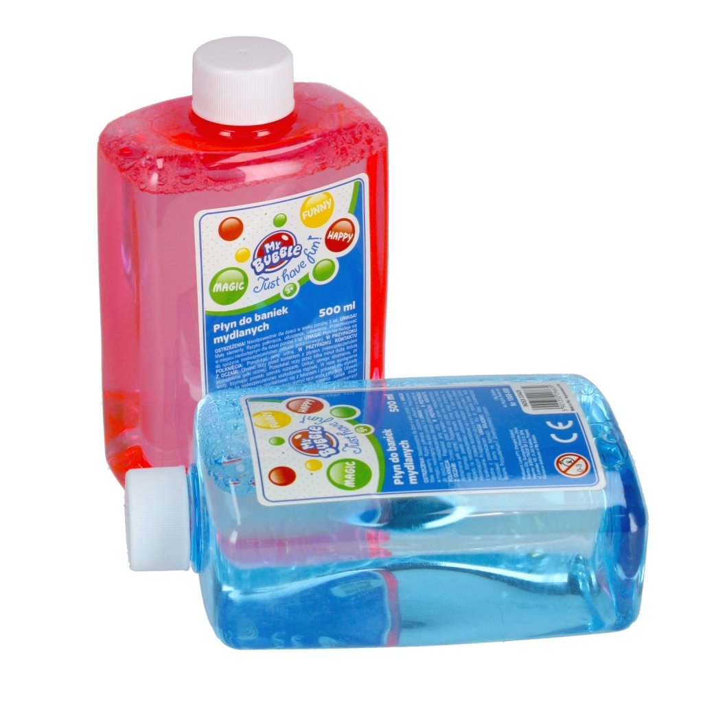Náplň My Bubble je ideálna na dopĺňanie zbraní, bublifukov alebo iných strojov a zariadení. Tekutina v 500 ml fľaši. Dodávajú sa v dvoch farebných prevedeniach.