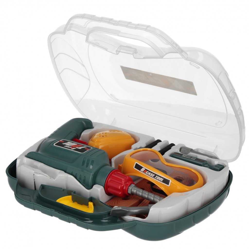 Náradie v kufíku, obsah sady je vŕtačka, ochranné okuliare, skrutkovač s 2 vymeniteľnými nadstavcami, ochranná maska, dosky na krájanie, skrutky. Cena je za sadu. Vhodné pre deti vo veku 3+ rokov. Rozmer (cm)