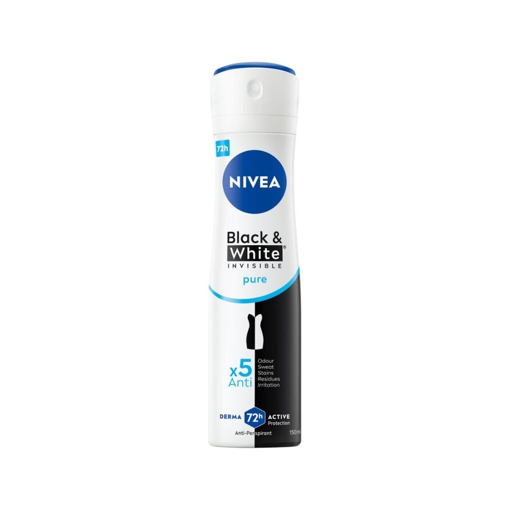 Nivea Black & White Pure je antiperspirant v spreji, ktorý poskytuje až 72-hodinovú ochranu proti poteniu a zápachu. Chráni oblečenie pred bielymi škvrnami na čiernom a žltými škvrnami na ...