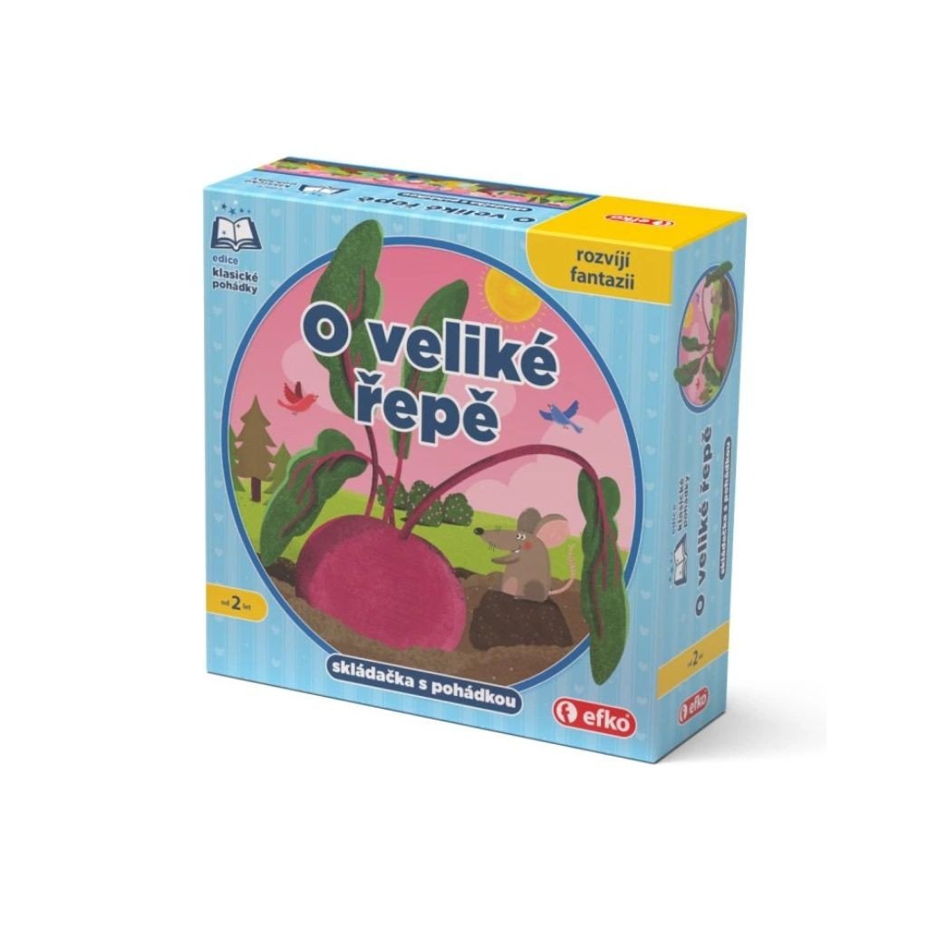 Skladačka O veľkej repe prináša deťom obľúbenú rozprávku v hravej forme. Úlohou je poskladať 9 pevných dielikov puzzle a vytvoriť obrázok celého príbehu, ktorý si môžu zároveň prečítať z priloženej knižky. Hra rozvíja jemnú motoriku, predstavivosť, logické myslenie a trpezlivosť. Obsahuje puzzle a rozprávku v slovenskom a českom jazyku. Vhodné pre deti od 2 rokov. Rozmer (cm)