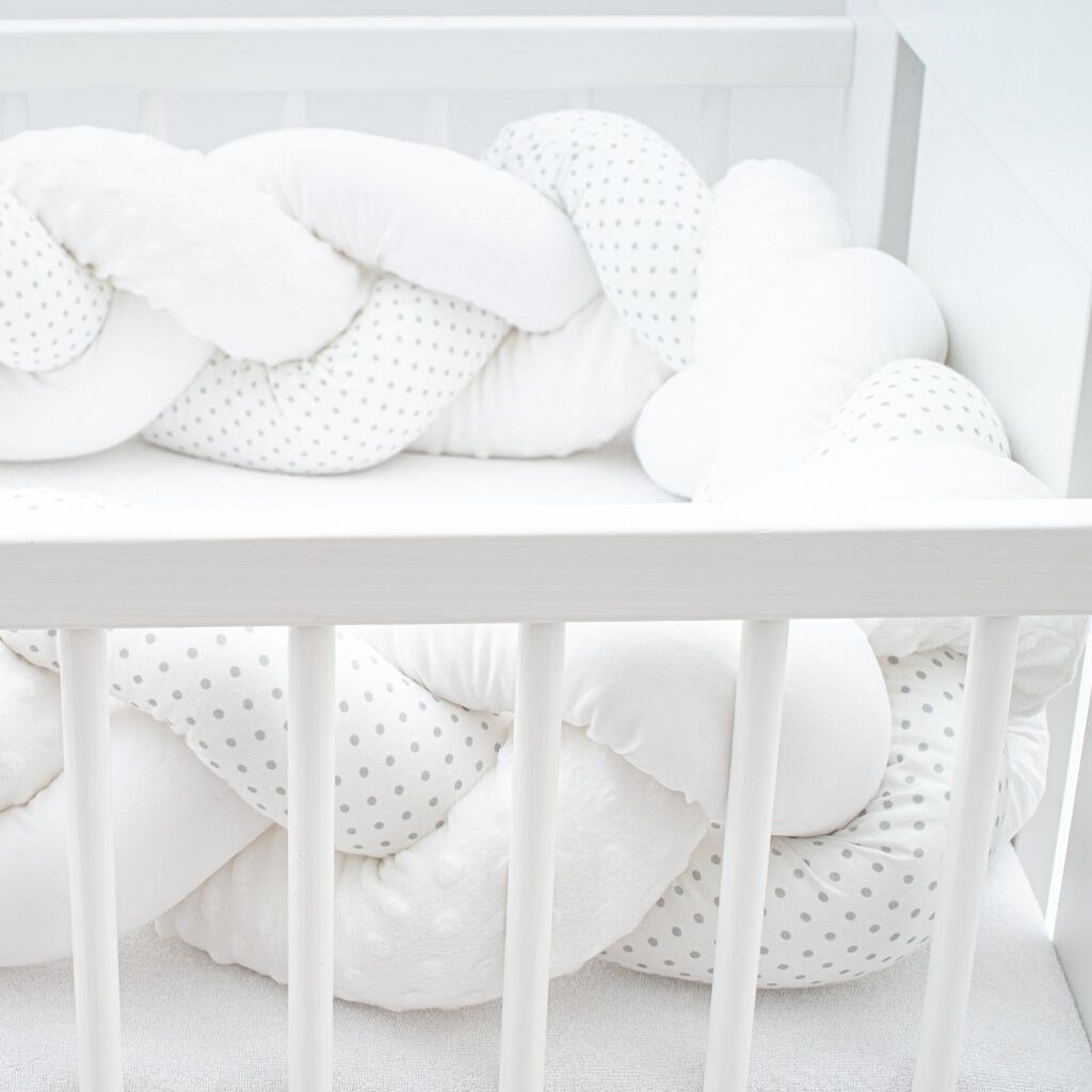 Ochranný mantinel do postieľky vrkoč New Baby Minka a Bodky sivý