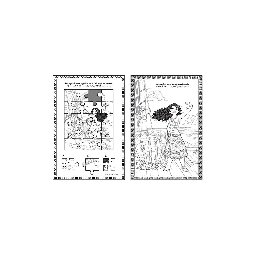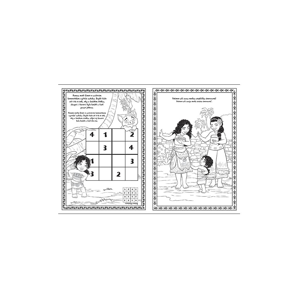 Omaľovánka A4 Vaiana 2. Omaľovánka obsahuje 16 čiernobielych strán s obrázkami na vyfarbenie a obľúbenými aktivitami....