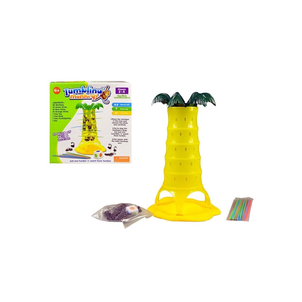 Hra padajúce opičky pre dvoch a viac hráčov. Opičky visia na palme. Hráči sa postupne snažia vysúvať tyčinky tak, aby žiadna opička nespadla.