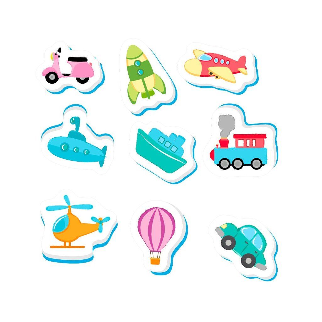 Penové hračky do vody s motívom dopravy obsahujú 9 kusov farebných dielikov, ktoré po namočení priľnú na vaňu alebo obkladačky a spríjemnia kúpanie každému dieťaťu, motívy dopravných prostriedkov podporujú fantáziu, učenie tvarov a rozvoj jemnej motoriky, mäkký penový materiál je ľahký, bezpečný a vhodný pre malé detské ruky, ideálne na zábavu vo vani aj pri vode. Rozmer (cm)
