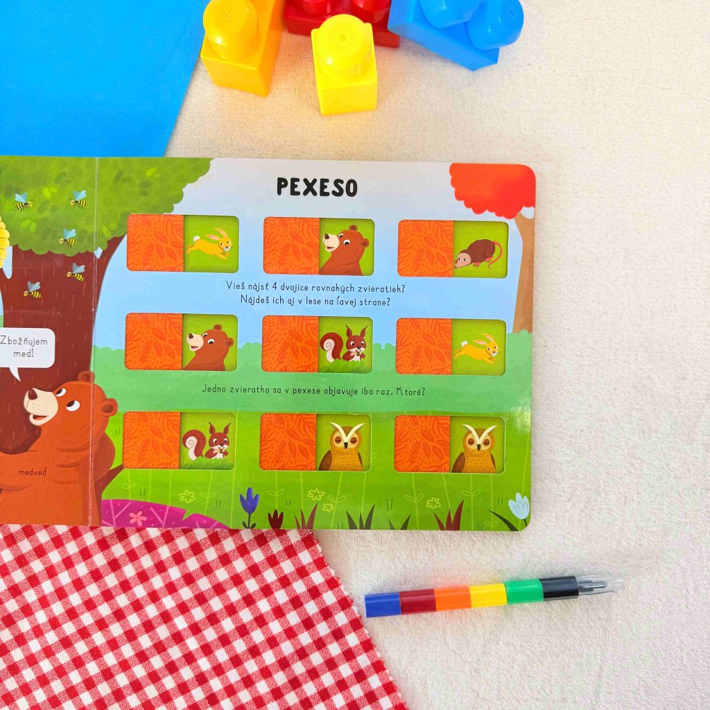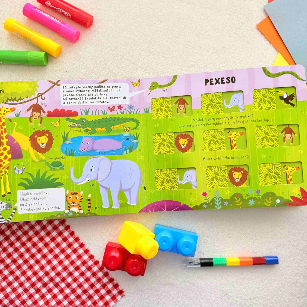 Odkry 2 okienka a nájdi 2 rovnaké zvieratká. Ktoré zvieratko nemá pár? Pexeso knižka Zvieratká na súši obsahuje zábavné úlohy s krásnymi ilustráciami, ktoré podporujú detskú ...