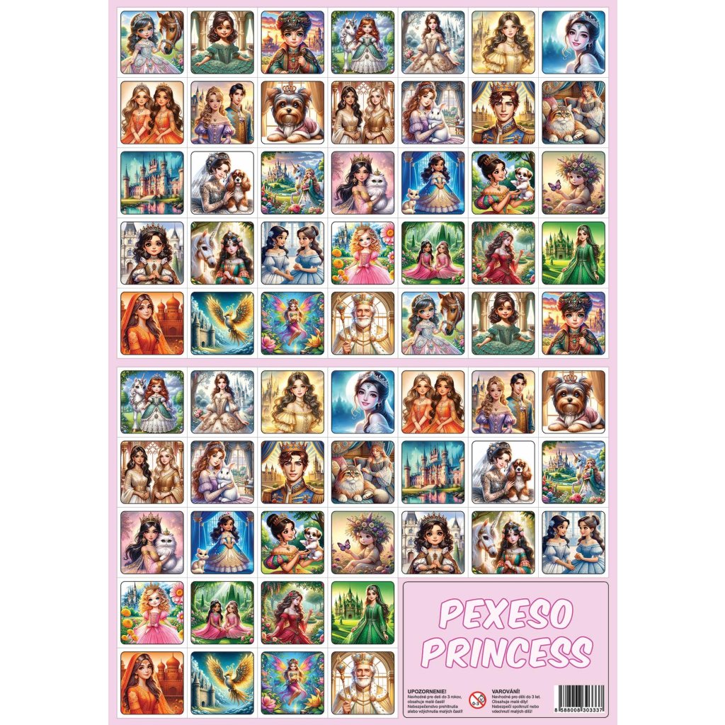 Spoločenská hra pexeso Princess, pri ktorej si deti hravou formou trénujú svoju pamäť. Hra sa po rozstrihaní skladá z 32 obrázkových dvojíc. Pexeso 32 dvojíc s obrázkami detských aktivít. Rozmer (cm)