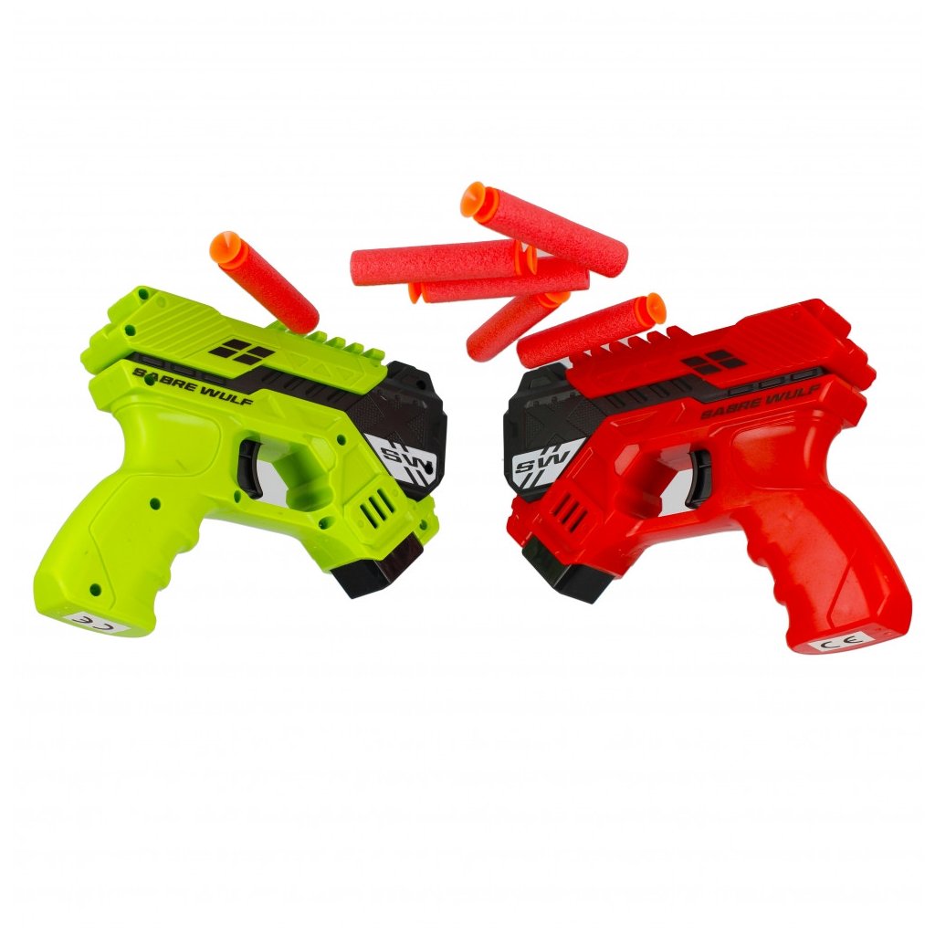 Pištoľ, má mäkké a nezávadné penové náboje. Je dostupná v dvoch farebných prevedeniach červená a zelená. Obsah sady je pištoľ, 6 penových šípok. Rozmery produktu sú 17x15x4cm. ...