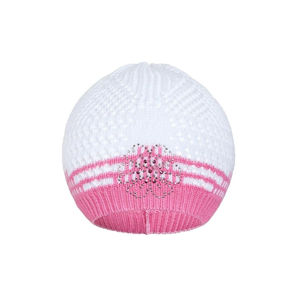 Jarná pletená čiapočka New Baby. Čiapočku zdobí obrázok kvetinky, ktorý je ozdobený trblietavými kamienkami. Čiapočka je ušitá z priedušného materiálu, preto je vhodná pre jarné i ...