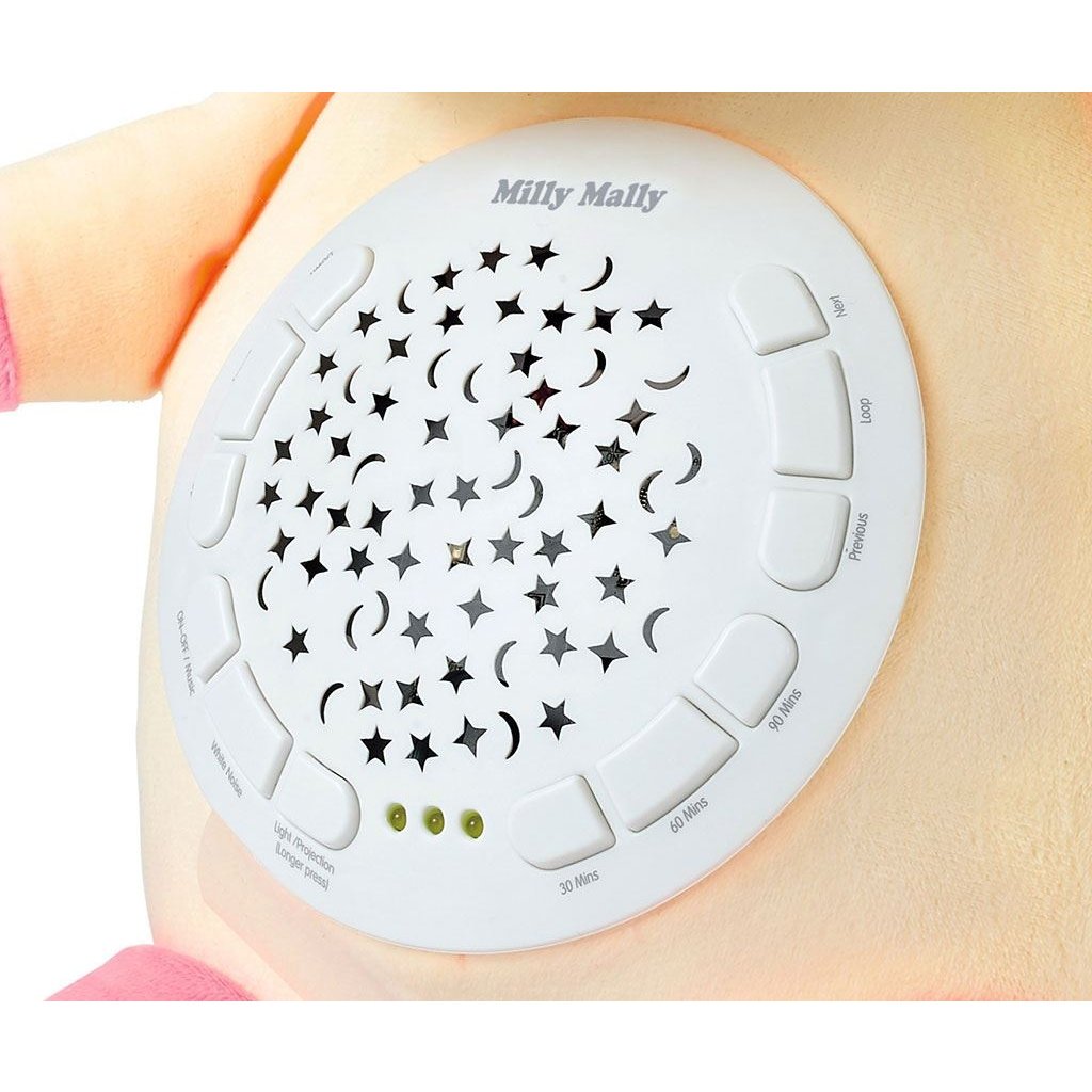 Môžete nastaviť vhodný čas trvania: 30, 60, 90 minút. K dispozícii sú 5 úrovní hlasitosti. Skvelým doplnkom jeho funkcií je 5 druhov bieleho šumu, ktorý má na bábätko osobitne upokojujúci účinok, umožňujúc mu ukludniť sa a rýchlejšie zaspať. S touto hračkou počujete jemné zvuky: šumenie vody so zvukmi vtákov, tlkot srdca, kvapkanie vody, spev vtákov alebo padajúci dážď.
