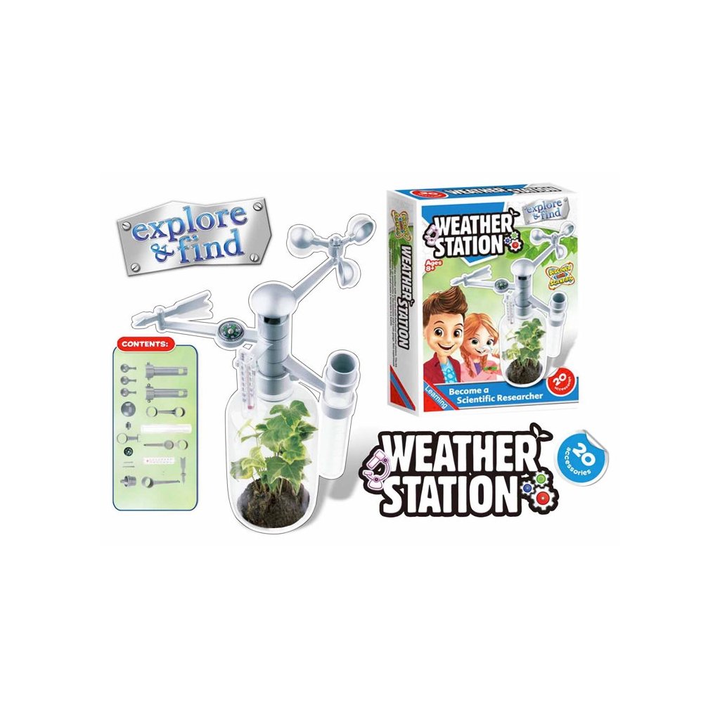 Si zvedavý a rád pozoruješ veci po novom? Meteorologická stanica. Pozoruj a zaznamenávaj počasie prostredníctvom meteorologickej stanice, ktorú si sám zostavíš. Stavebnica obsahuje veterník, vetromer, teplomer a zrážkomer. V návode sa dozvieš aj veľa iných zaujímavostí. Nevhodné pre deti do 3 rokov. Rozmer (cm)