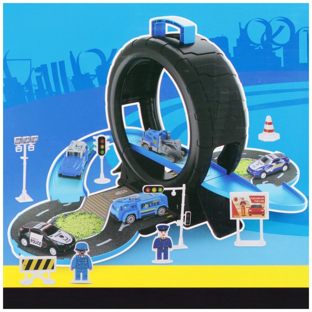 Policajné parkovisko v gume, s pohyblivými časťami. Sada obsahuje 3 x policajné autá a parkovisko. Rozmery balenia sú 28x21x7 cm. Cena je za sadu. Vhodné pre deti vo veku 3+ rokov....