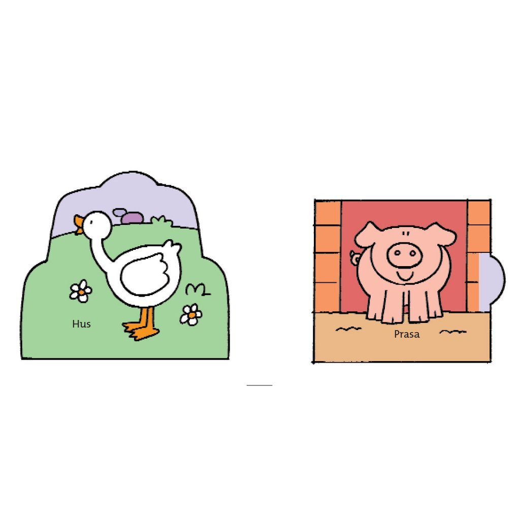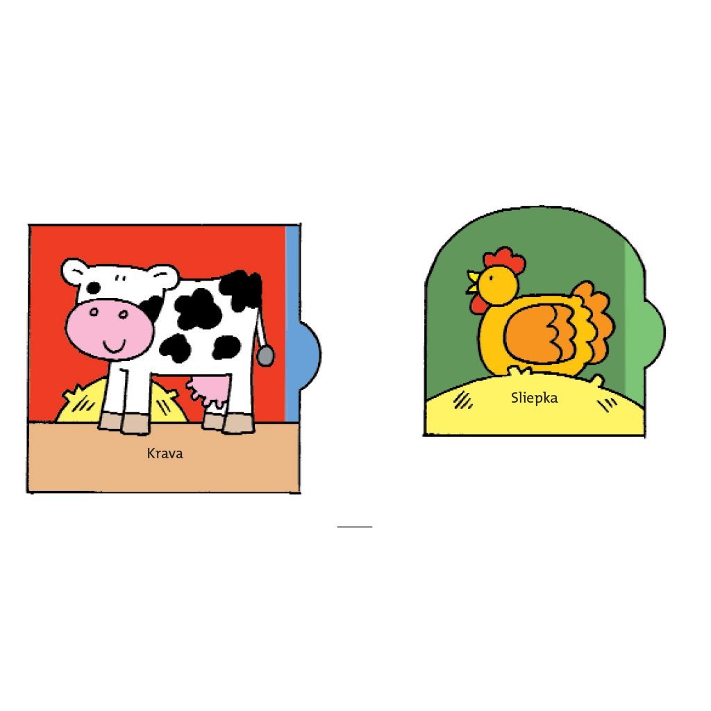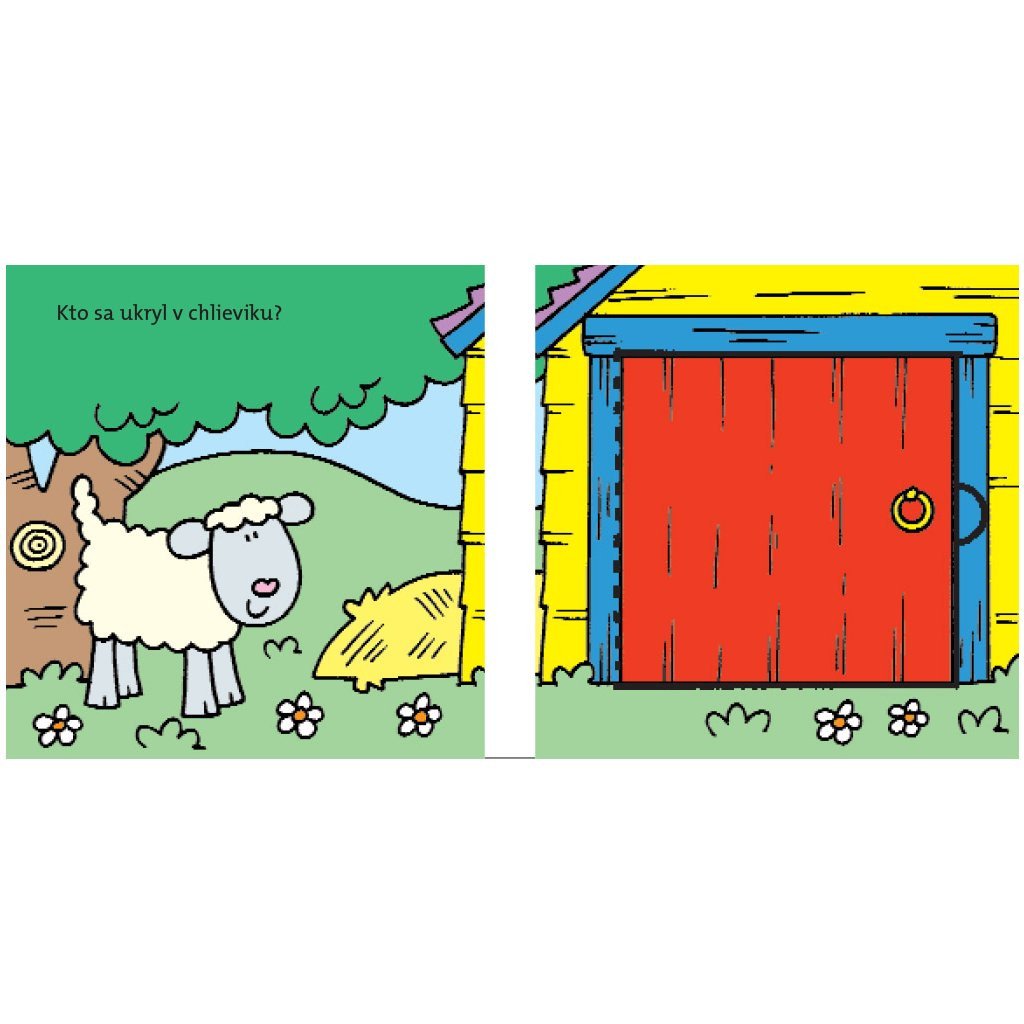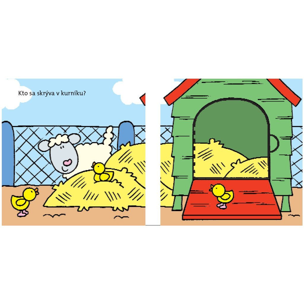 Pozri, kto sa skrýva na dvore, leporelo naučí deti zábavnou formou spoznávať zvieratká, ktoré môžu stretnúť na dvore – kravičku, sliepočku, kačicu, koňa, psíka, kozu, hus, prasiatko...