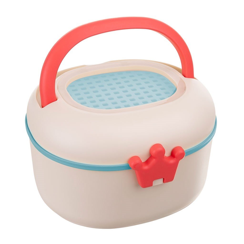 Ideálne na uloženie hrkálok, hryzátok a drobného príslušenstva. Špeciálny praktický klip v tvare korunky zaručuje tesné uzatvorenie.