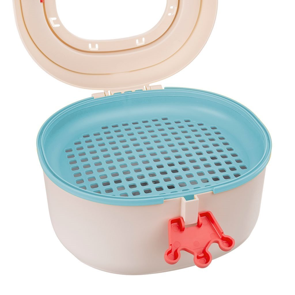 - Vnútri je špeciálna mriežka, ktorá na jednej strane umožňuje sušiť hračky po umytí, na druhej strane môže slúžiť ako sitko na preosievanie piesku pri hre na pieskovisku