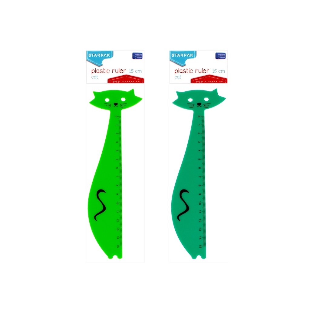 Pravítko z odolného plastu so zaoblenými koncami pre bezpečnosť vášho dieťaťa. brObsah balenia 15 cm pravítko kočka. Tmavozelené a bledozelené. Cena za 1 kus. Výrobok je vyrobený z plastu.