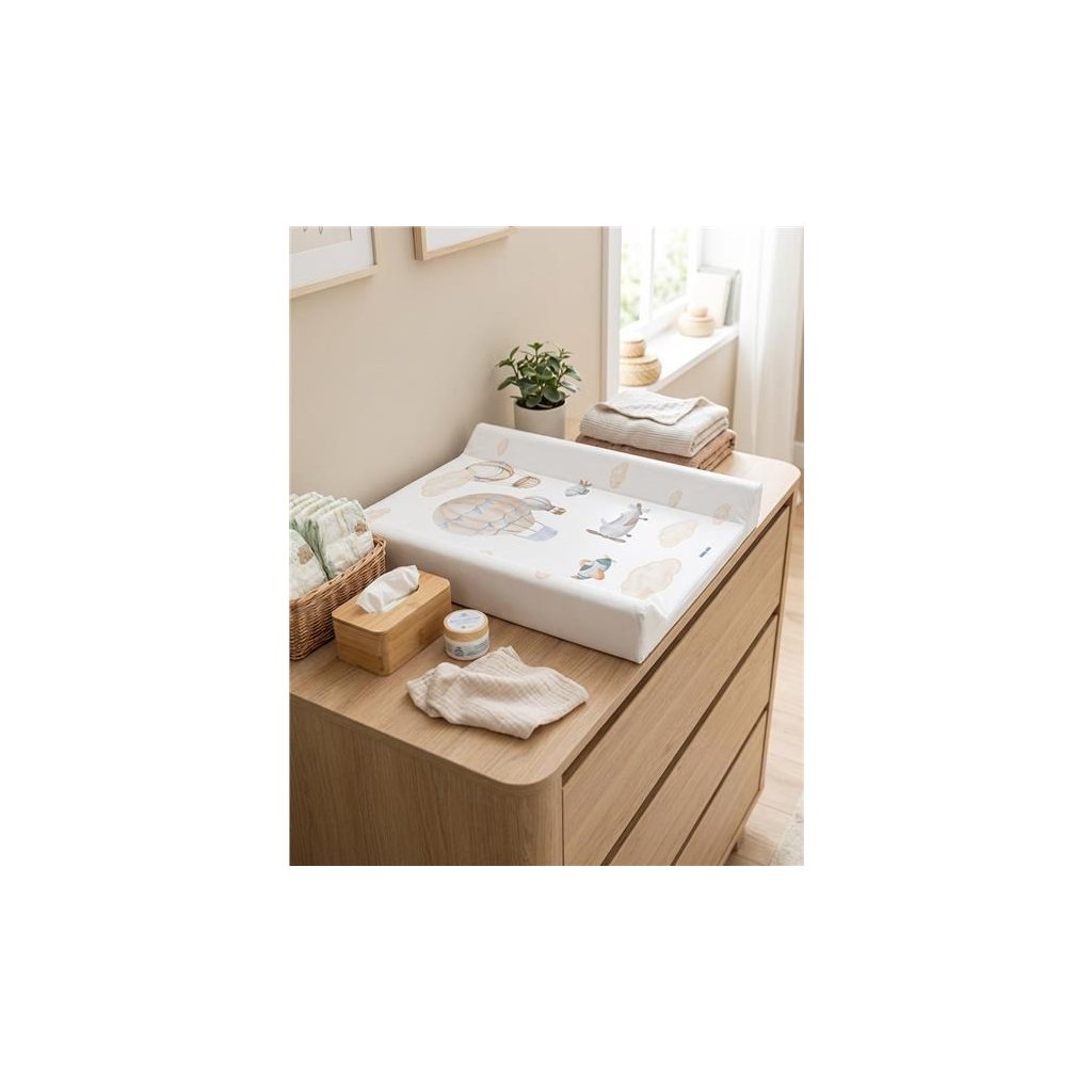 Tento konkrétny prebaľovací pult je vybavený spevnenou doskou a špeciálnymi kolíkmi, ktoré zabraňujú posúvaniu, čo ho robí stabilným a bezpečným pri používaní. Vďaka dôrazu na hygienu, bezpečnosť a pohodlie je nenahraditeľný pri každodennej starostlivosti o dieťa.