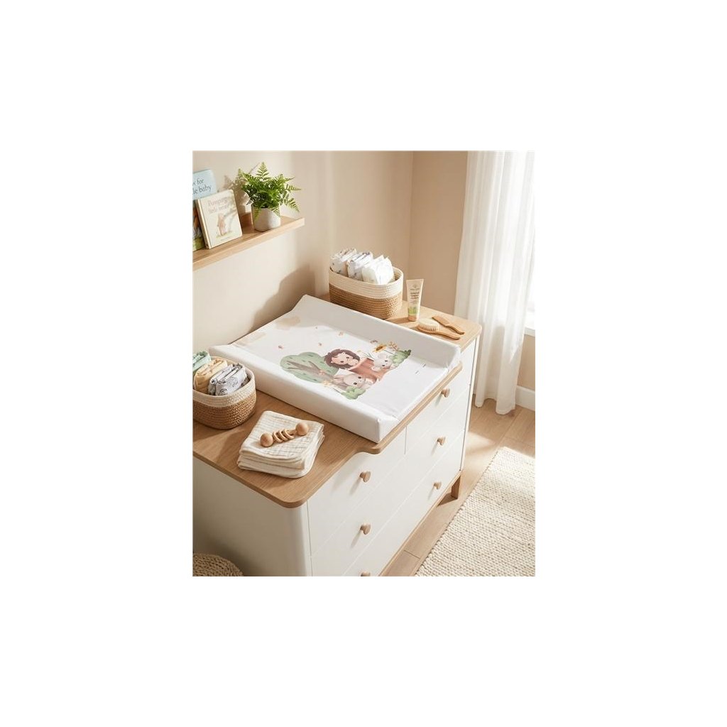 Tento konkrétny prebaľovací pult je vybavený spevnenou doskou a špeciálnymi kolíkmi, ktoré zabraňujú posúvaniu, čo ho robí stabilným a bezpečným pri používaní. Vďaka dôrazu na hygienu, bezpečnosť a pohodlie je nenahraditeľný pri každodennej starostlivosti o dieťa.