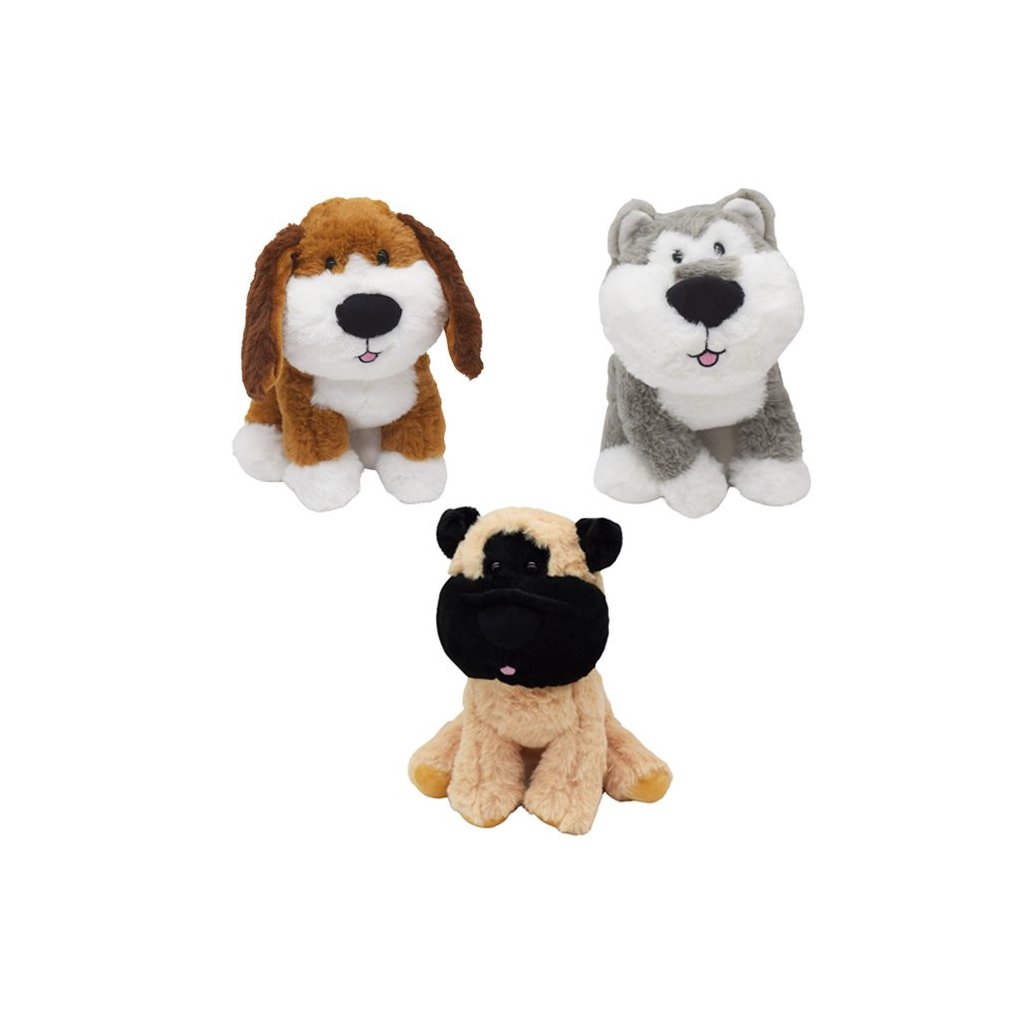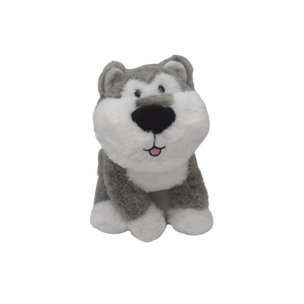 Plyšový 22cm sediaci psík. Možnosť výberu z troch druhov - sivo-biely, hnedo-biely alebo hnedo-čierny. Cena je za 1 kus. Vhodné pre deti 3+....