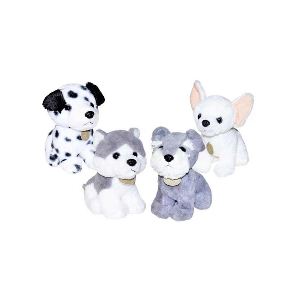 Plyšový sediaci psík so známkou. Možnosť výberu zo štyroch druhov - dalmatín, husky, bradáč alebo biely. Rozmer 20 cm. Rozmer (cm)