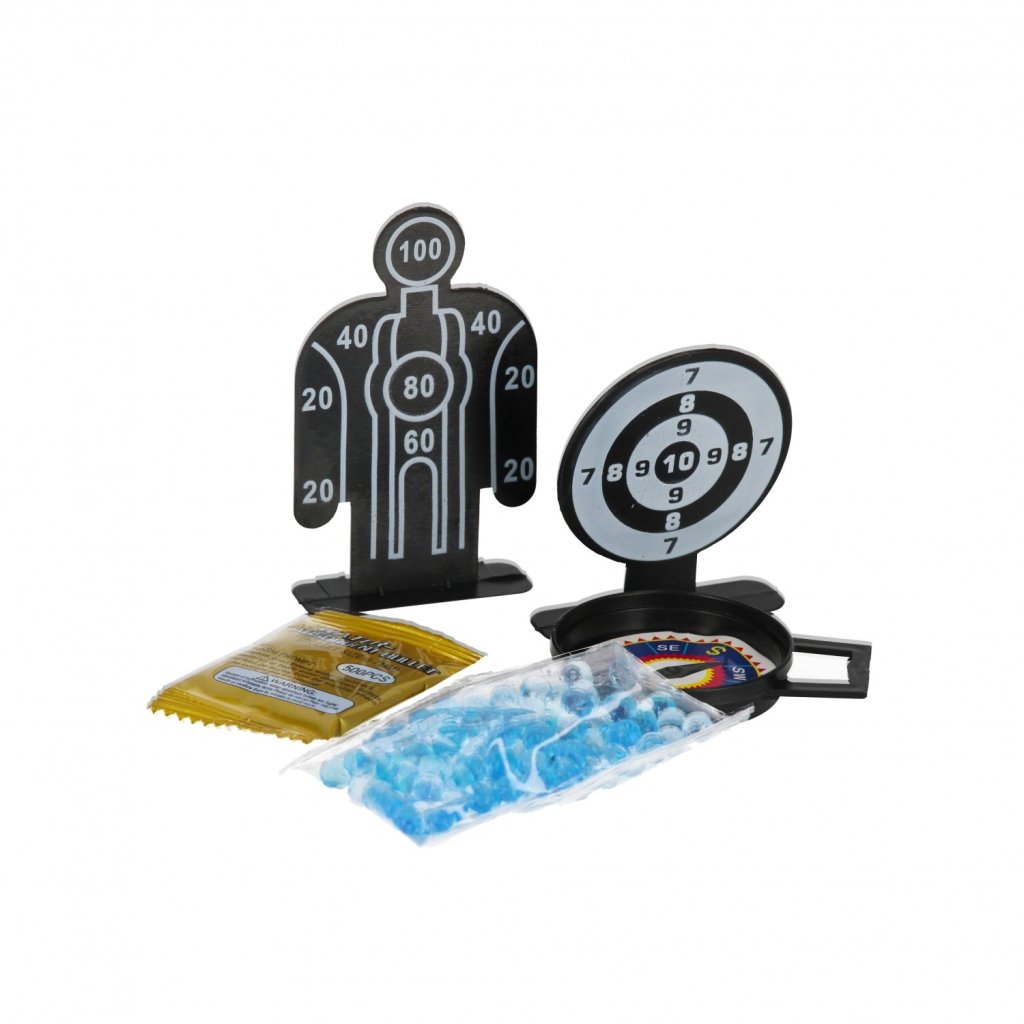 Vodná projektilová puška s terčmi je skvelá hračka na horúce letné dni — prináša dynamickú a bezpečnú zábavu na čerstvom vzduchu. Ergonomický tvar a jednoduchý mechanizmus plnenia umožňujú rýchlu prípravu na vodné bitky. Súčasťou balenia sú terče a kompas pre väčšiu hernú variabilitu. Náboje treba pred použitím namočiť do vody 3–4 hodiny, po napučiavaní sú mäkké a bezpečné na strieľanie. Obsah balenia: 1× karabína, 1× terč-cieľ, 1× terč-figúrka, 1× kompas, 2× balenie projektilov. Odporúčané od 14 rokov. Cena za kus. Rozmer (cm)