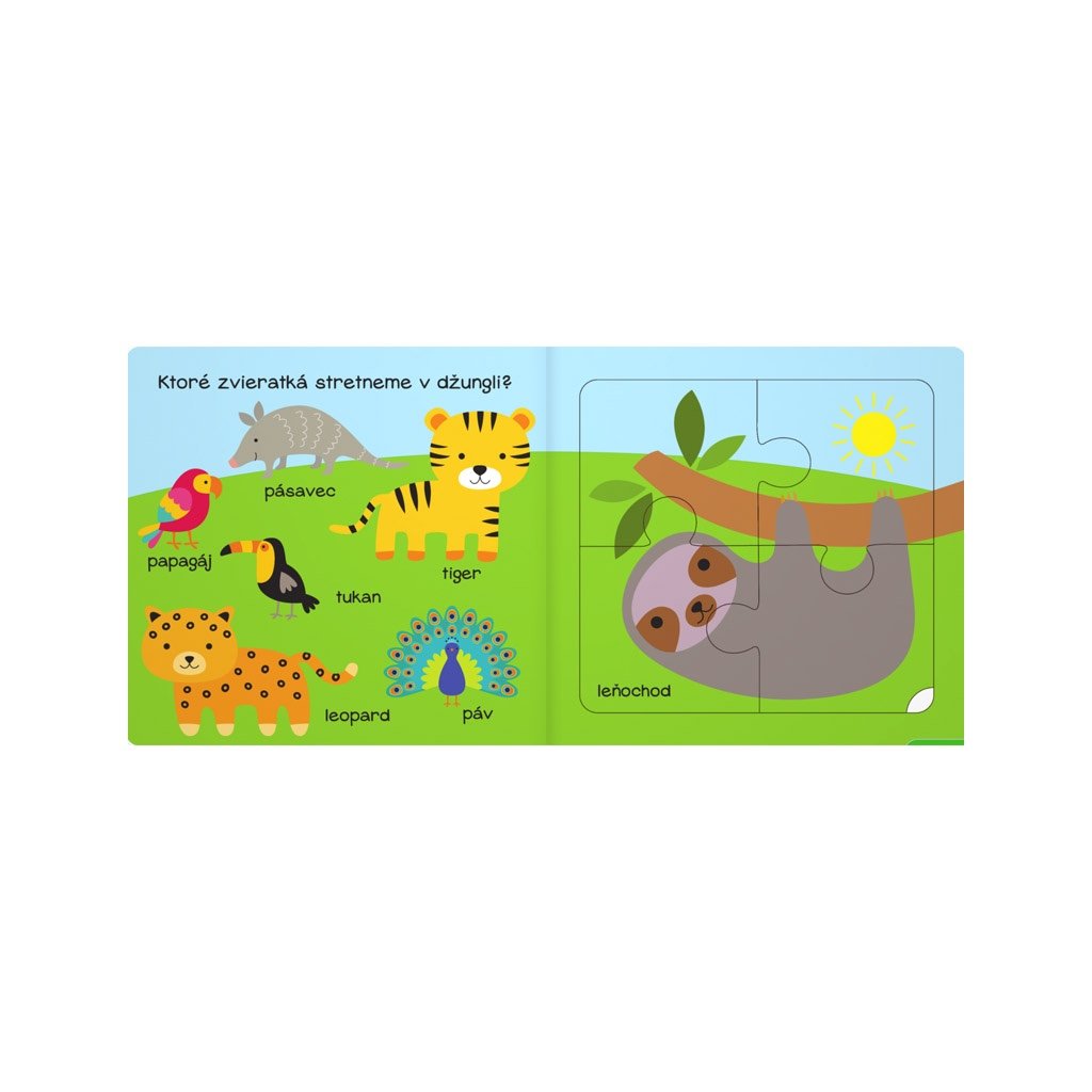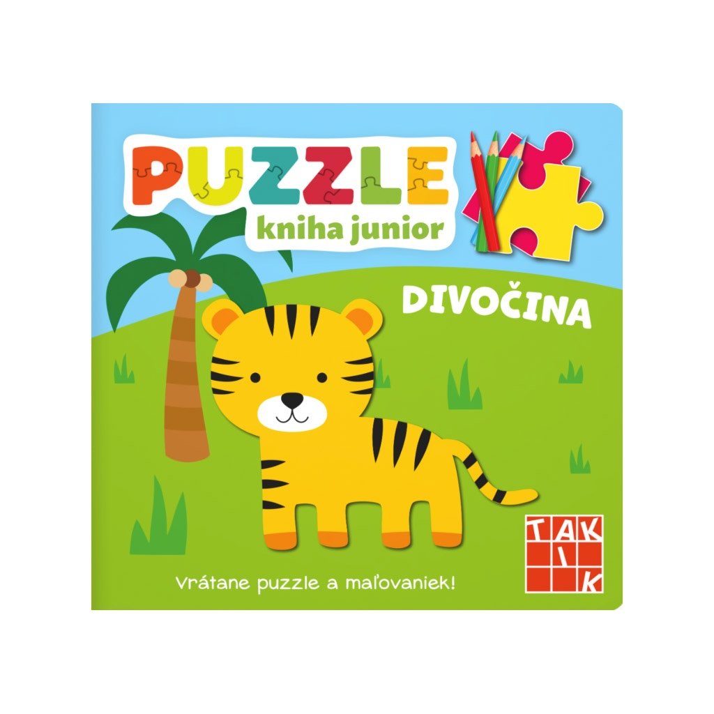 Puzzle kniha junior - Divočina je tematicky zameraná na zvieratká obývajúce rôzne prostredia - džungľu, safari, more a les. Knižka obsahuje trojicu maľovaniek a puzzle skladačiek lev, leňochod, veľryba, ktoré deti môžu skladať a rozkladať znova a znova. Každé puzzle tvoria štyri pevné dieliky, ktoré vydržia aj časté ohýbanie.