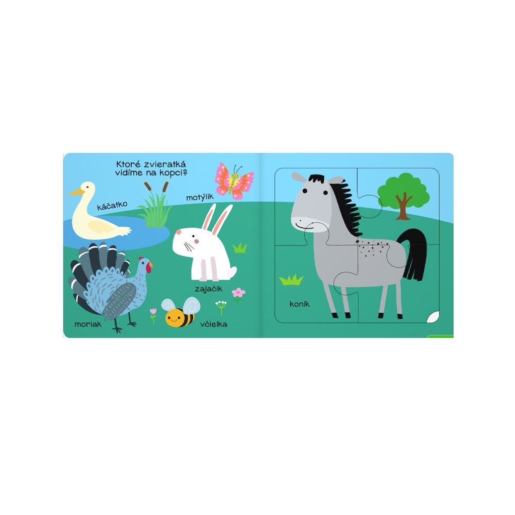 Puzzle kniha junior - Farma je tematicky zameraná na hospodárske zvieratká. Knižka obsahuje trojicu maľovaniek a puzzle skladačiek kravička, ovečka, oslík, ktoré deti môžu skladať a rozkladať znova a znova. Každé puzzle tvoria štyri pevné dieliky, ktoré vydržia aj časté ohýbanie.