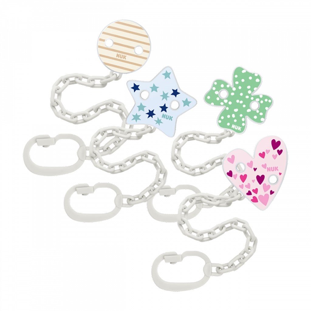 Veselá, farebná retiazka na cumlík NUK, je skvelým pomocníkom pre bábätká i rodičov. Nenahraditeľná zvlášť počas cestovania a prechádzok. Vďaka spone cumlík nespadne na zem a nezašpiní sa a nestratí sa. Má jednoduché použitie a je vyrobený tak, aby sa dal pripnúť k detskému oblečeniu. Pestré farby a veselé obrázky dieťa zaujmú. Určené pre deti od prvých dní života. Veľkosť