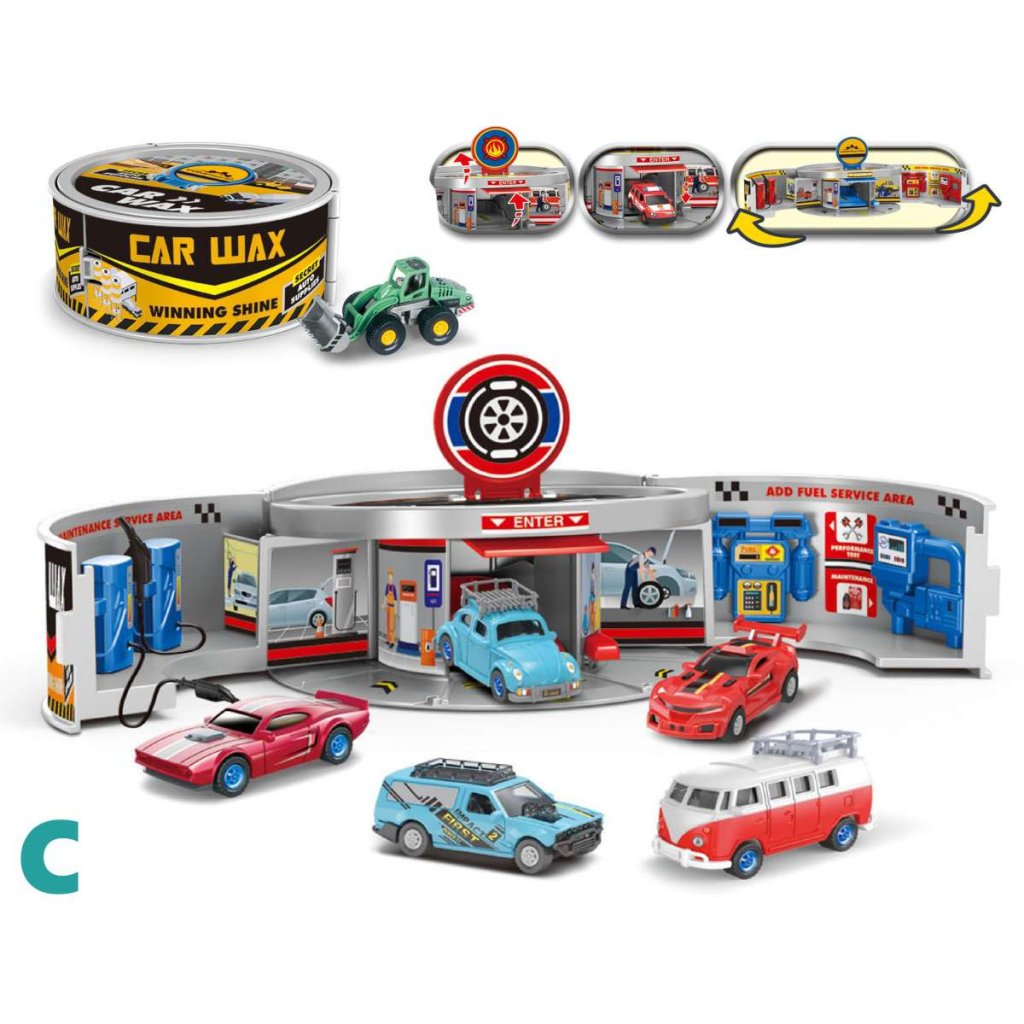 Rozkladacie parkovisko v plechovke, ktorú si deti môžu jednoducho rozložiť a začať hru. Balenie obsahuje otváraciu garáž, tankovacie stojany, nálepky a autíčko. Možnosť výberu zo štyroch druhov. Cena je za kus. Vhodné pre deti vo veku 3+ rokov. Rozmer (cm)
