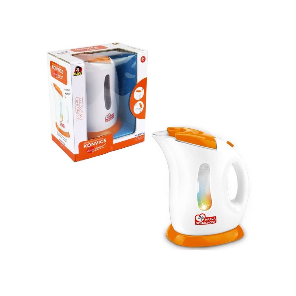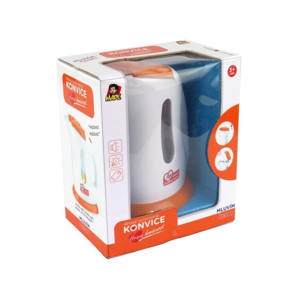 Kanvica na batérie s českým hlasom. Napájanie 2 x 1,5V AA batérie. "Hotovo", "Voda varí, pozor nech ťa neopaří" to sú slovenské vety, ktoré kanvice hovorí. Zabalené v českom boxe. Rozmery boxu sú 22 x 18 x 12 cm. Rozmer (cm)