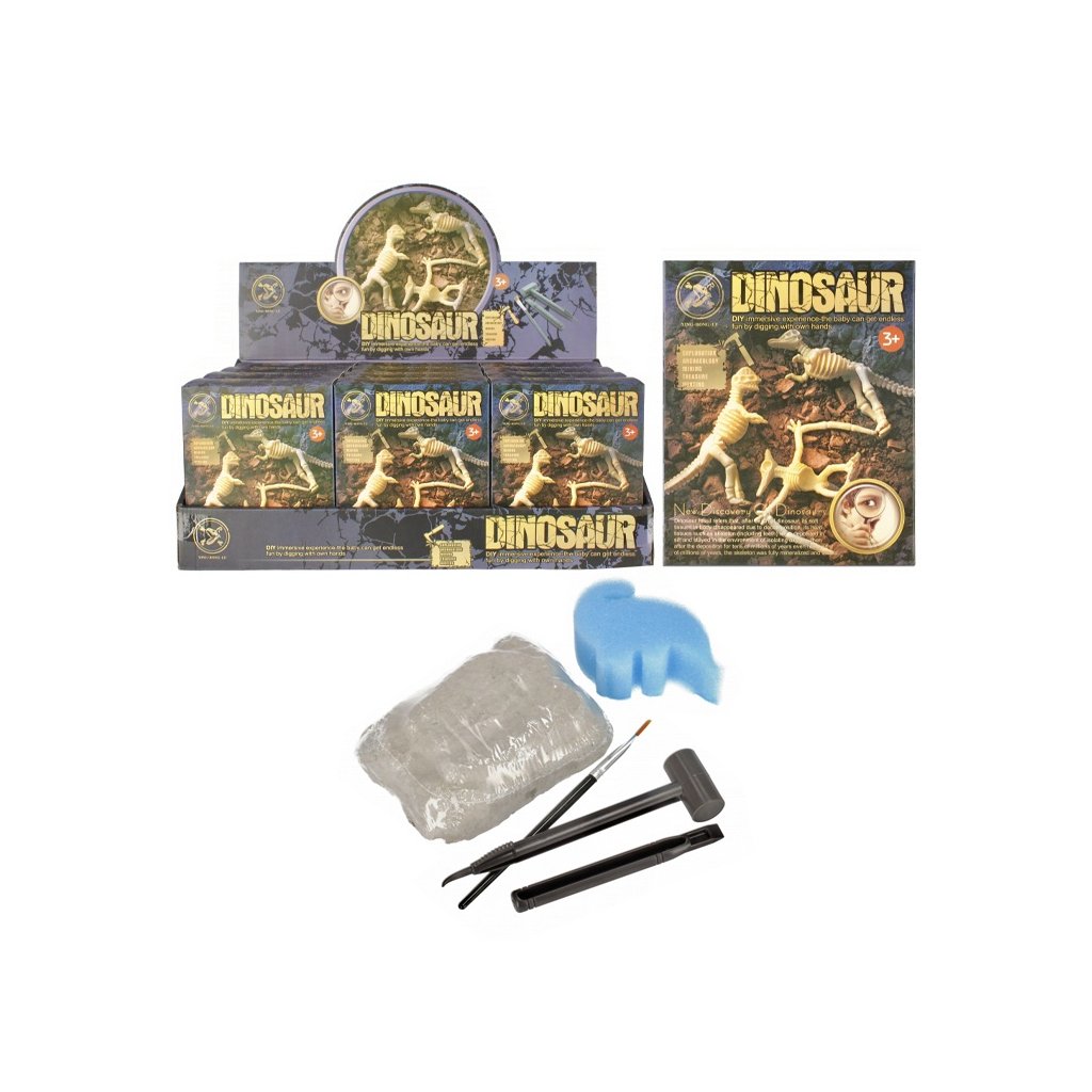 Figúrky dinosaurov sú skvelé ako na hranie, tak na dekoráciu políc. Archeologický set určite zaujme malých aj veľkých nadšencov archeológie. Úlohou je vyhrabať skrytého Dinosaura zo sadry pomocou troch nástrojov, ktoré sú súčasťou sady. Balenie obsahuje sadru s figúrkou Dinosaura, špongiu v tvare dinosaura, štetec, kladivo, dláto. Rozmery balenia sú 12x15x5cm. Hračka je určená pre deti vo veku 3+. Rozmer (cm)