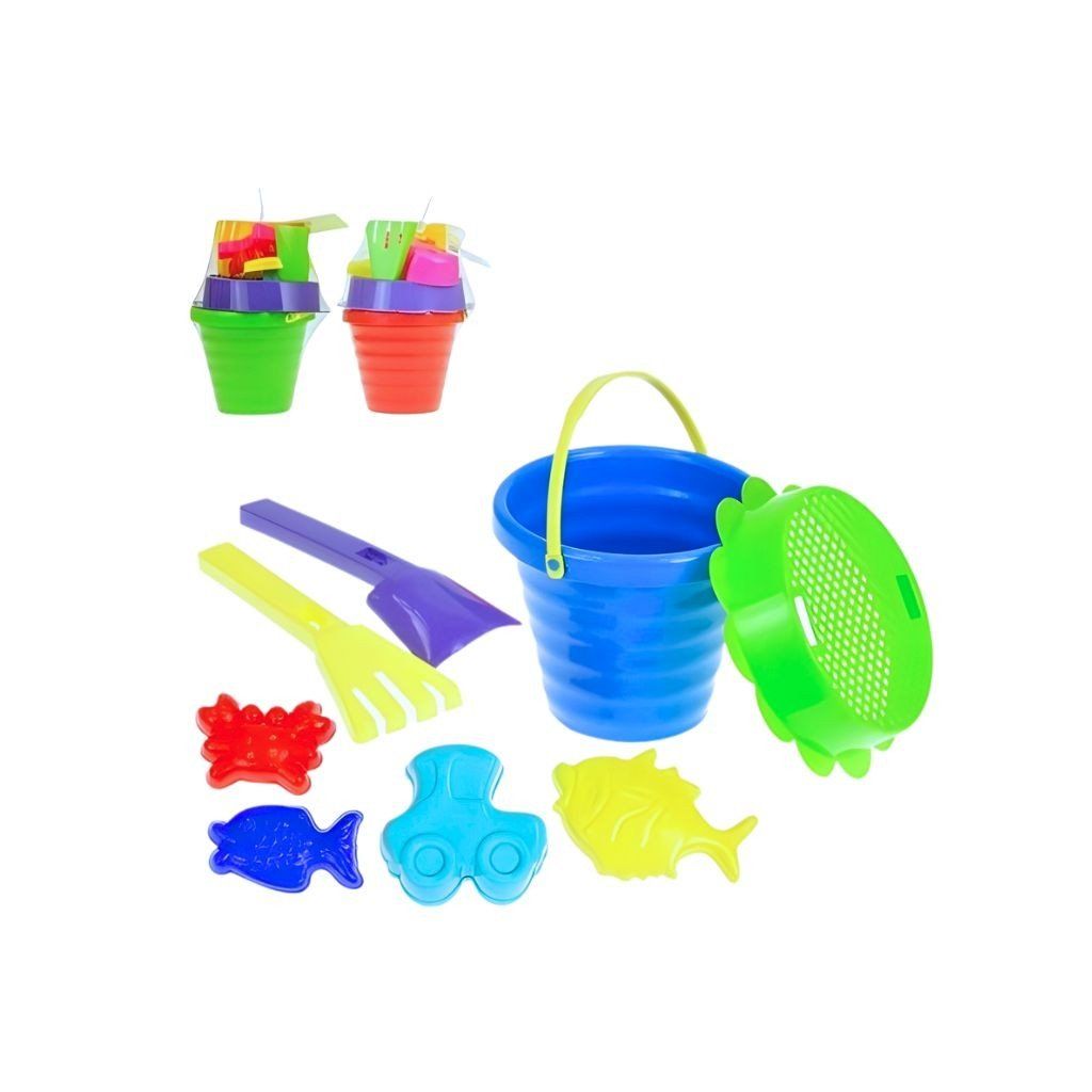 Detská sada na piesok obsahuje spolu 7 kusov príslušenstva ako vedierko, sitko, lopatku, hrabličky a 3 formičky, ideálna na hru na pieskovisku, pláži alebo v záhrade, vyrobená z kvalitného ...