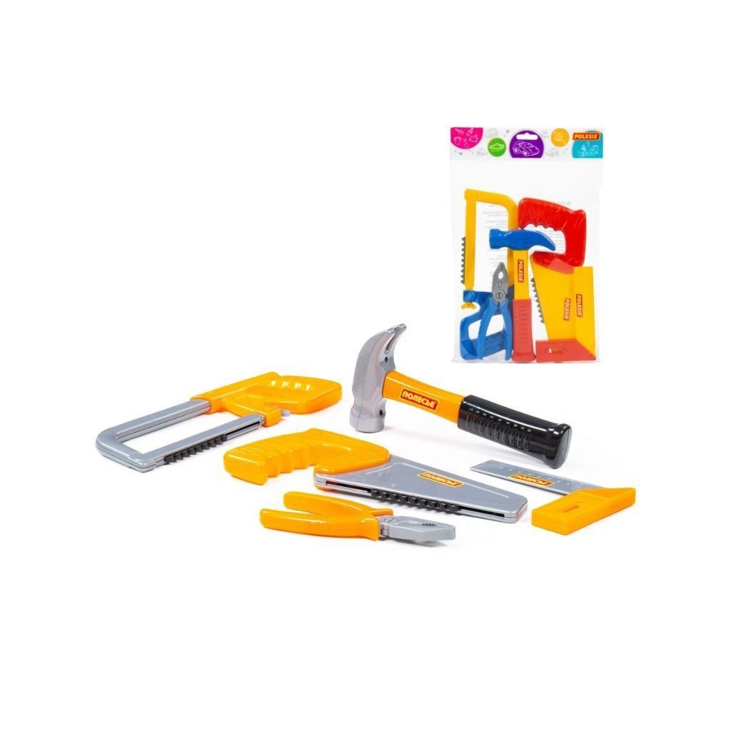 Detská sada náradia obsahuje 5 kusov základného náradia ako kladivo, uholník, kombinačky a dve píly, ktoré sú prispôsobené detským rukám a vyrobené z kvalitného a odolného plastu, jednotlivé nástroje napodobňujú reálne náradie a umožňujú deťom vyskúšať si rôzne činnosti pri hre na majstra, hra podporuje rozvoj jemnej motoriky, koordinácie pohybov a priestorovej predstavivosti, vhodná na individuálnu aj skupinovú hru, dostupné vo viacerých farebných variantoch. Cena za jeden set. Rozmer (cm)