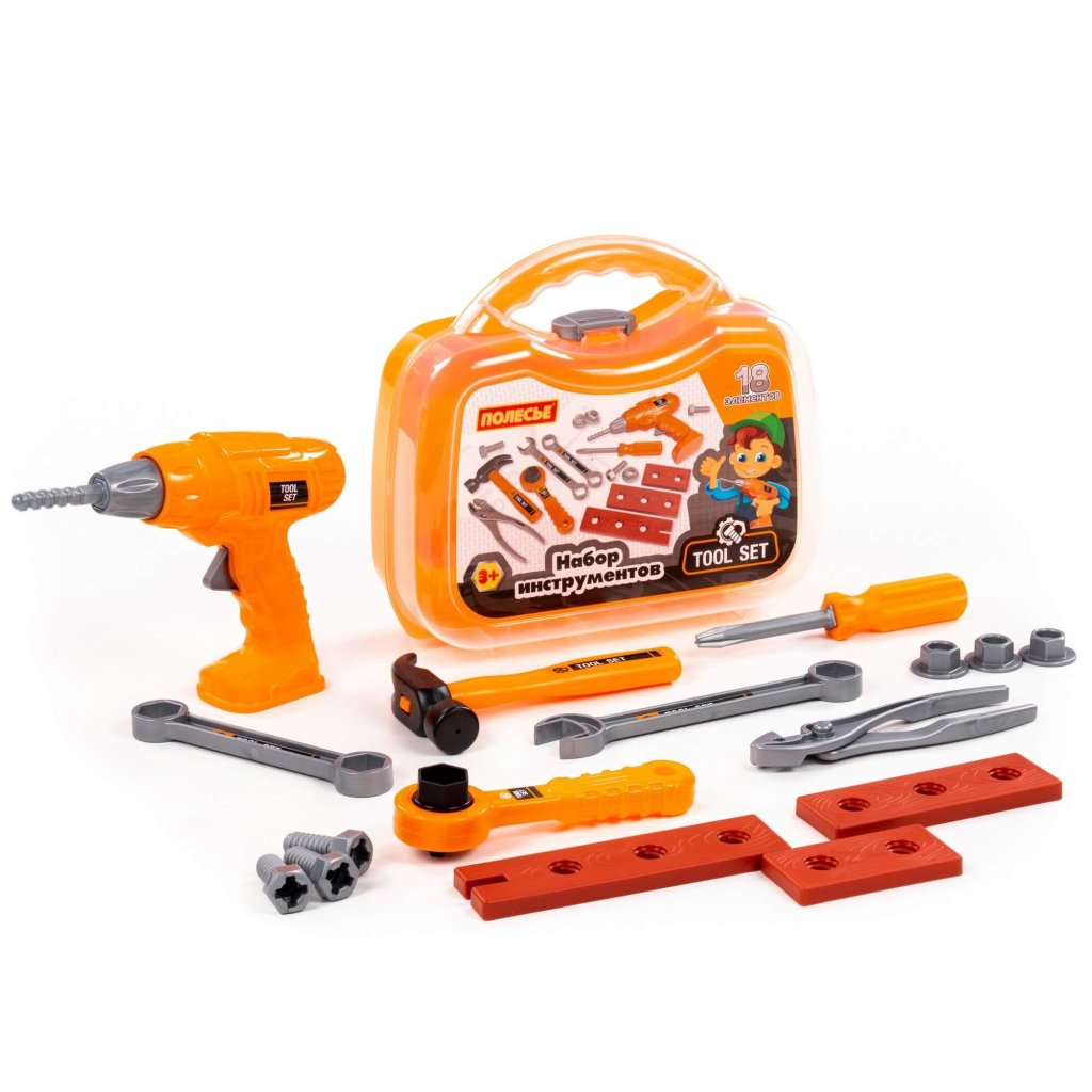 Sada náradia je umiestnená v pohodlnom kufríku s rukoväťou. Medzi nástrojmi mladého staviteľa nájdete: