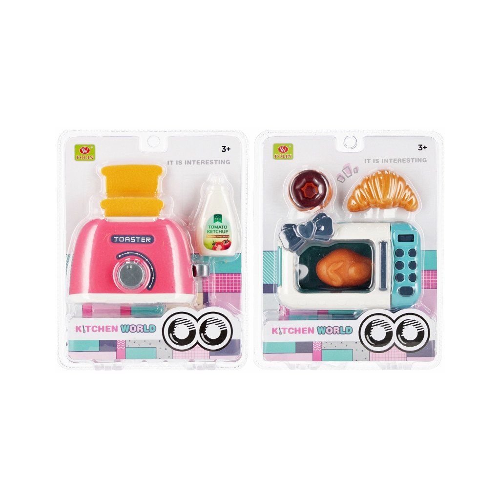Sada spotrebičov s doplnkami, má rozmery 16X22X5 cm. Na výber z dvoch variánt Sada s hriankovačom a Sada s mikrovlnkou. Obsah prvej sady je hriankovač, 2x toast, 1x kečup a obsah druhej sady je mikrovlnná rúra, 1x croissant, 1x kuracie mäso, 3x sušienky. Cena je za 1 sadu. Vhodné pre deti 3+. Rozmer (cm)