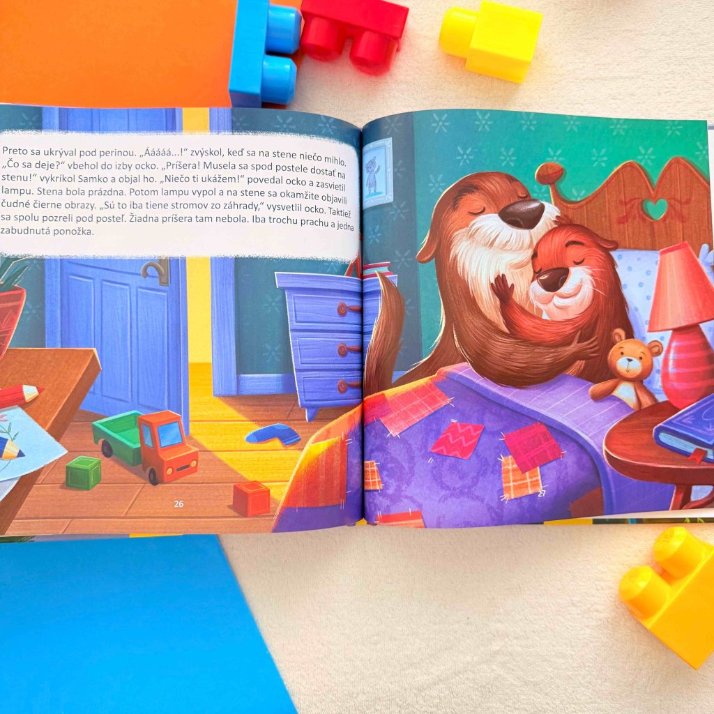 Každý potrebuje aspoň jedno objatie denne! Vydrík Samko zažíva deň plný milých aj nemilých prekvapení – naháňa sa s kamarátom, vychutná si svoje obľúbené palacinky, navštívi lunapark, objaví kúzlo hviezdnej oblohy, ale taktiež sa vyrovná so smútkom z padnutej zmrzliny či strachom z príšery pod posteľou. Čo je však na celom dni najkrajšie? Objatia, ktoré upokojujú, chránia a hovoria: Ľúbim ťa. Rozmer (cm)