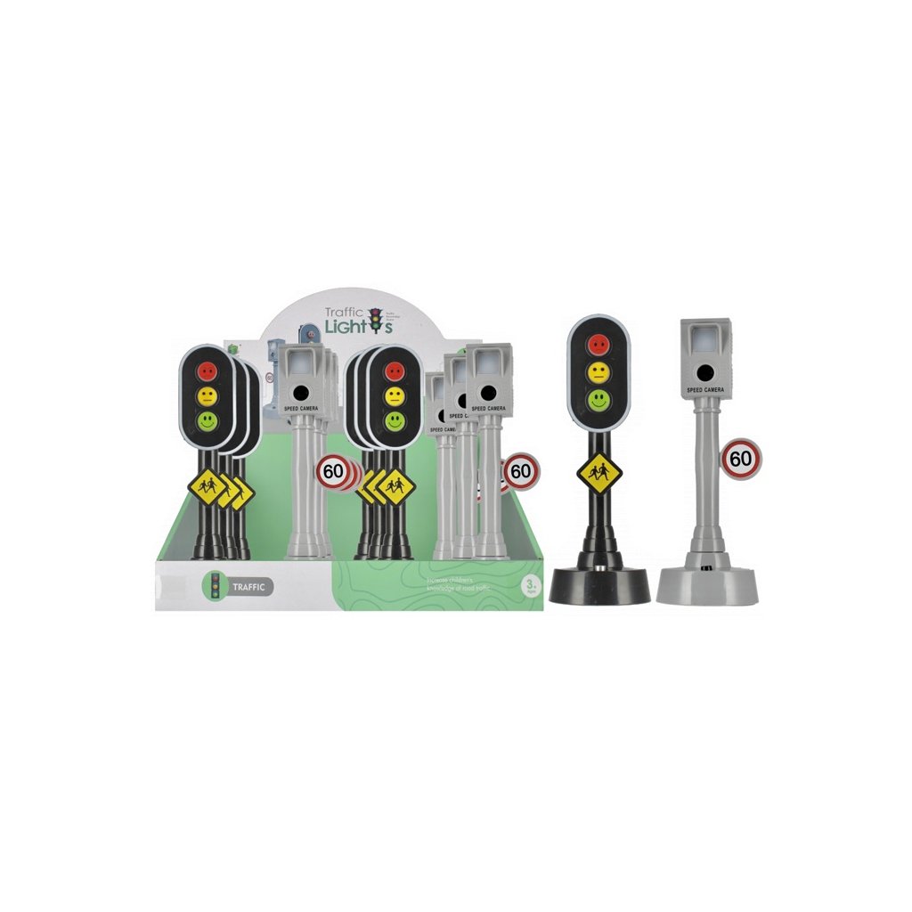 Dodáva sa v dvoch verziách: semafor alebo rýchlostný radar, má svetelné a zvukové efekty, signál sa rozsvieti červeným, oranžovým a zeleným svetlom. Po stlačení rýchlostný radar vydá zvuk fotenia a svetlo prichádza rovnaké ako pri skutočnom. Semafor mení farby, takže deti sa budú cítiť ako pred skutočným semaforom, bez ohľadu na to, či učenie zahŕňa prechádzanie cez jazdné pruhy alebo prechádzanie cez križovatku. Balenie obsahuje semafor alebo rýchlostný radar. Rozmery balenia sú 28x16x21cm. Vyžaduje 3 x LR41 batérie - súčasťou balenia. Hračka je určená pre deti vo veku 3+. Rozmer (cm)