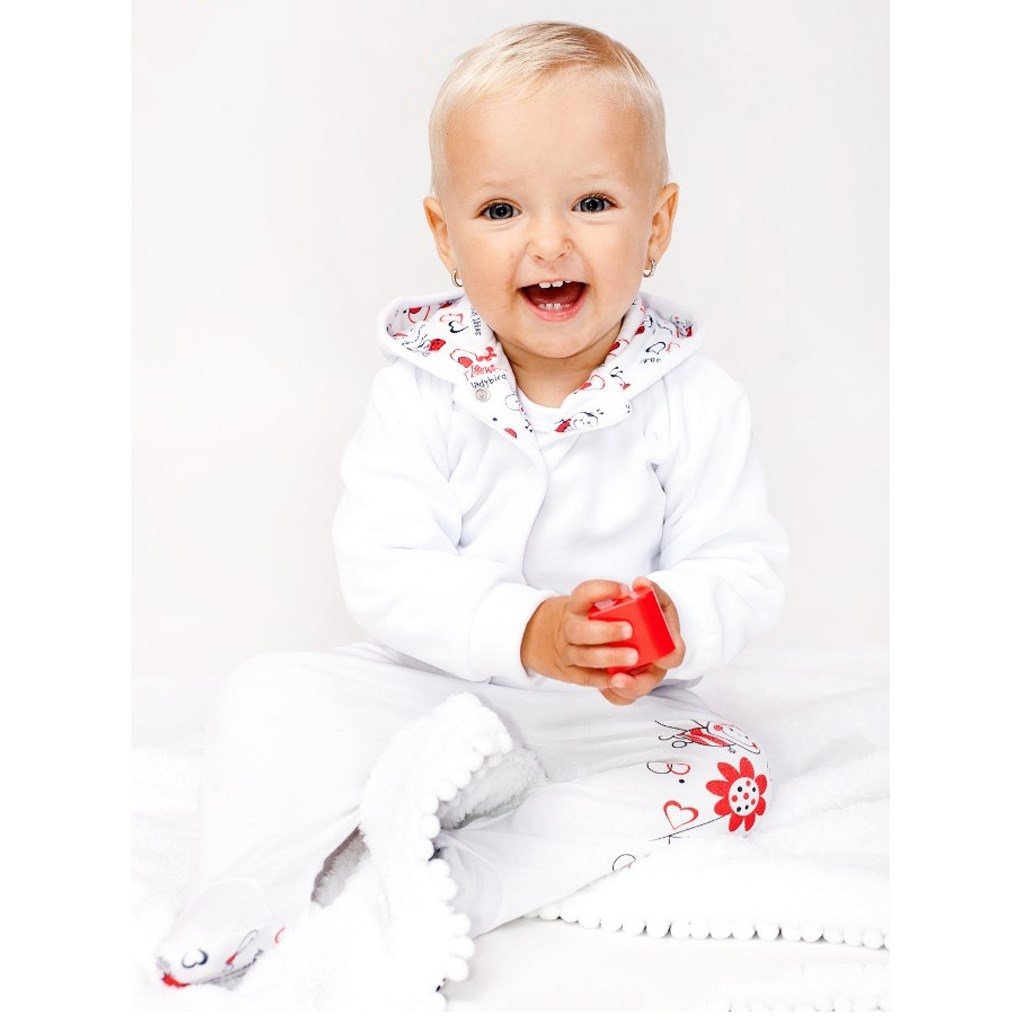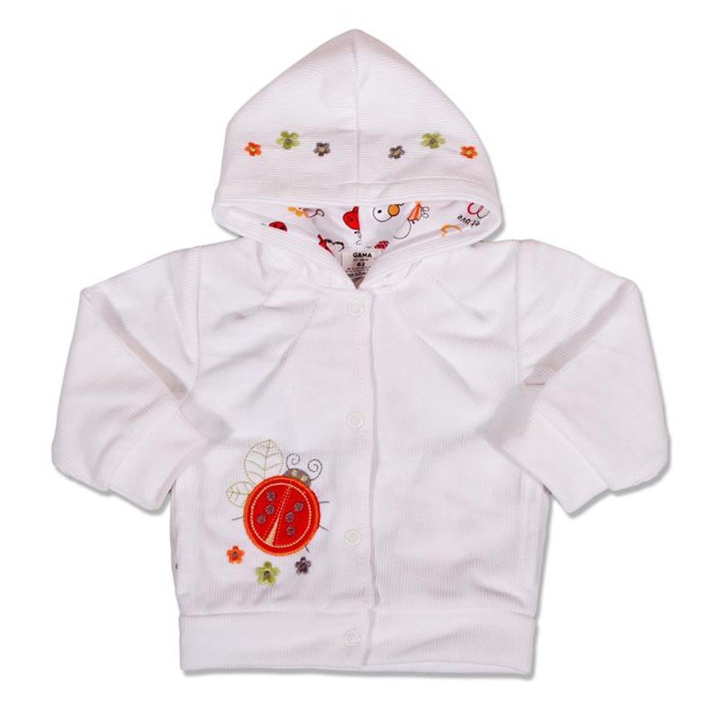Krásna semišková mikinka s kapucňou, s našitým obrázkom lienky. Zloženie: 80% bavlna, 20% polyester.