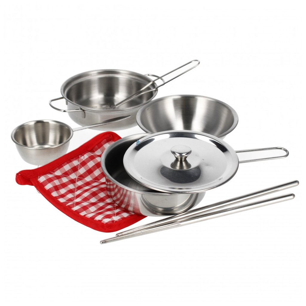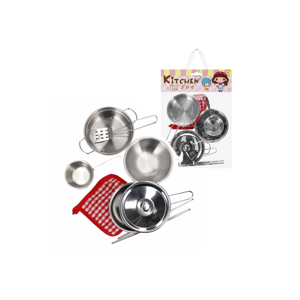 Set do kuchyne, obsah súpravy je 1x hrniec s rukoväťou, 1x utierka, 2x hrniec, 1x pokrievka, 1x misa, 1x naberačka, 1x sada. paličky. Rozmery balenia sú 21x34x5cm. hmotnosť produktu bez obalu [kg]: Výrobok je určený pre deti vo veku: 3+. Rozmer (cm)