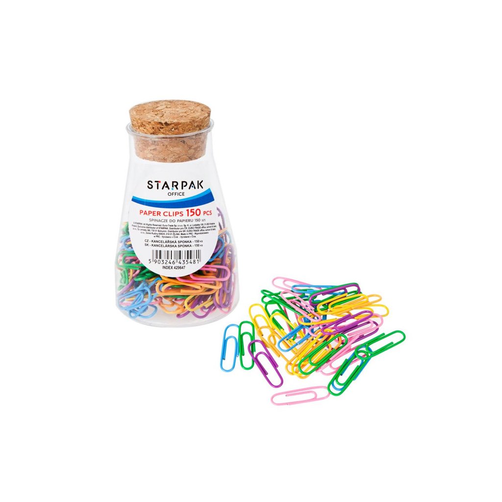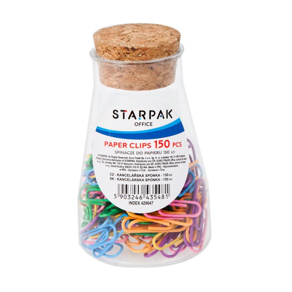 Set farebných sponiek. Farebné kancelárske sponky balené v dóze s korkovou zátkou, po 150 kusov. Nevhodné pre deti do 3 rokov. ...
