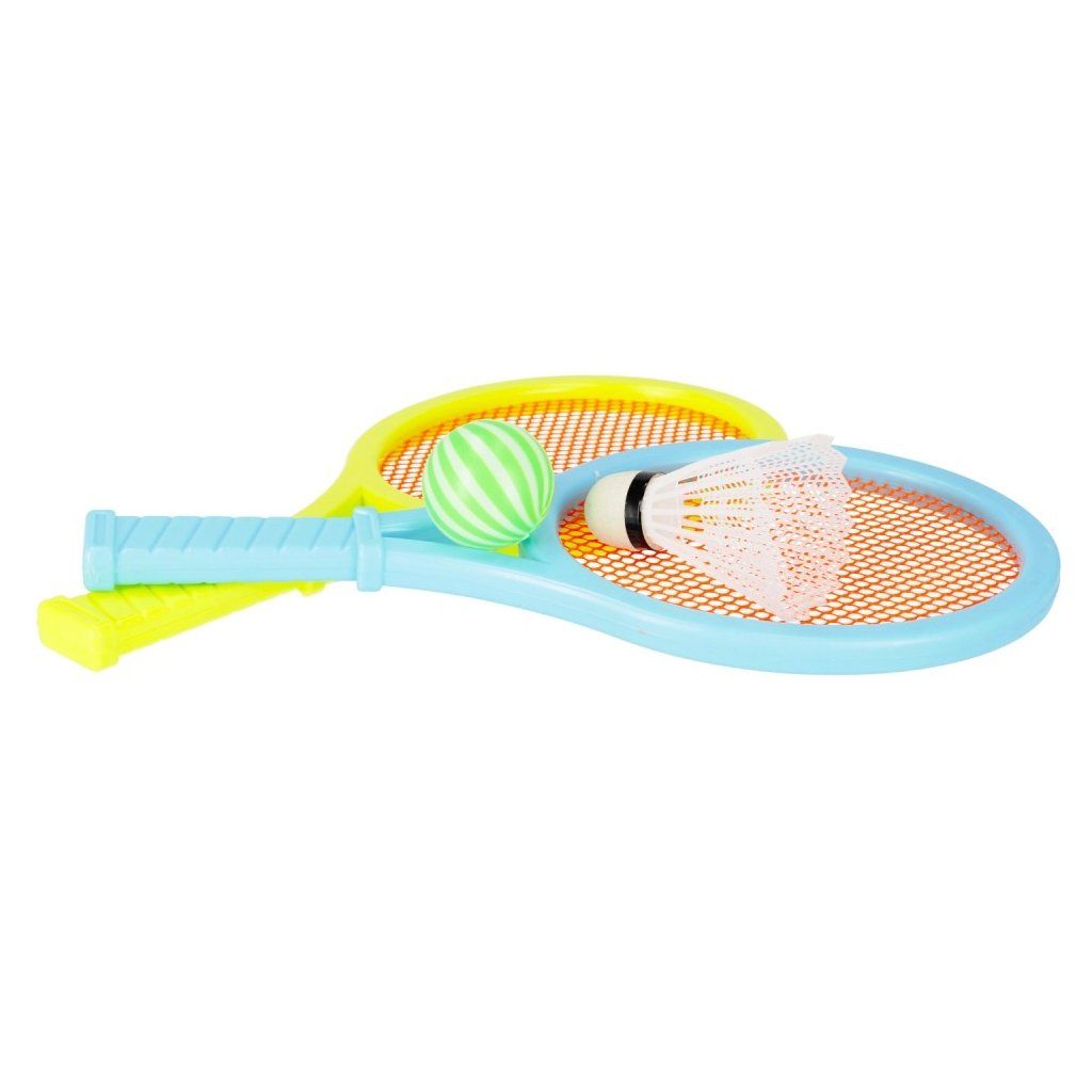 Športový set na badminton je ideálny na aktívnu zábavu vonku, na záhrade, v parku alebo pri vode. Sada obsahuje dve rakety so sieťovaným výpletom, košík a malú loptičku, vďaka čomu si deti môžu vybrať rôzne spôsoby hry. Hra podporuje rozvoj motoriky, koordinácie, súťaživosti aj pohybových zručností. Ľahké materiály z plastu, peny a textilu zabezpečujú jednoduché používanie pre deti. Rozmer (cm)