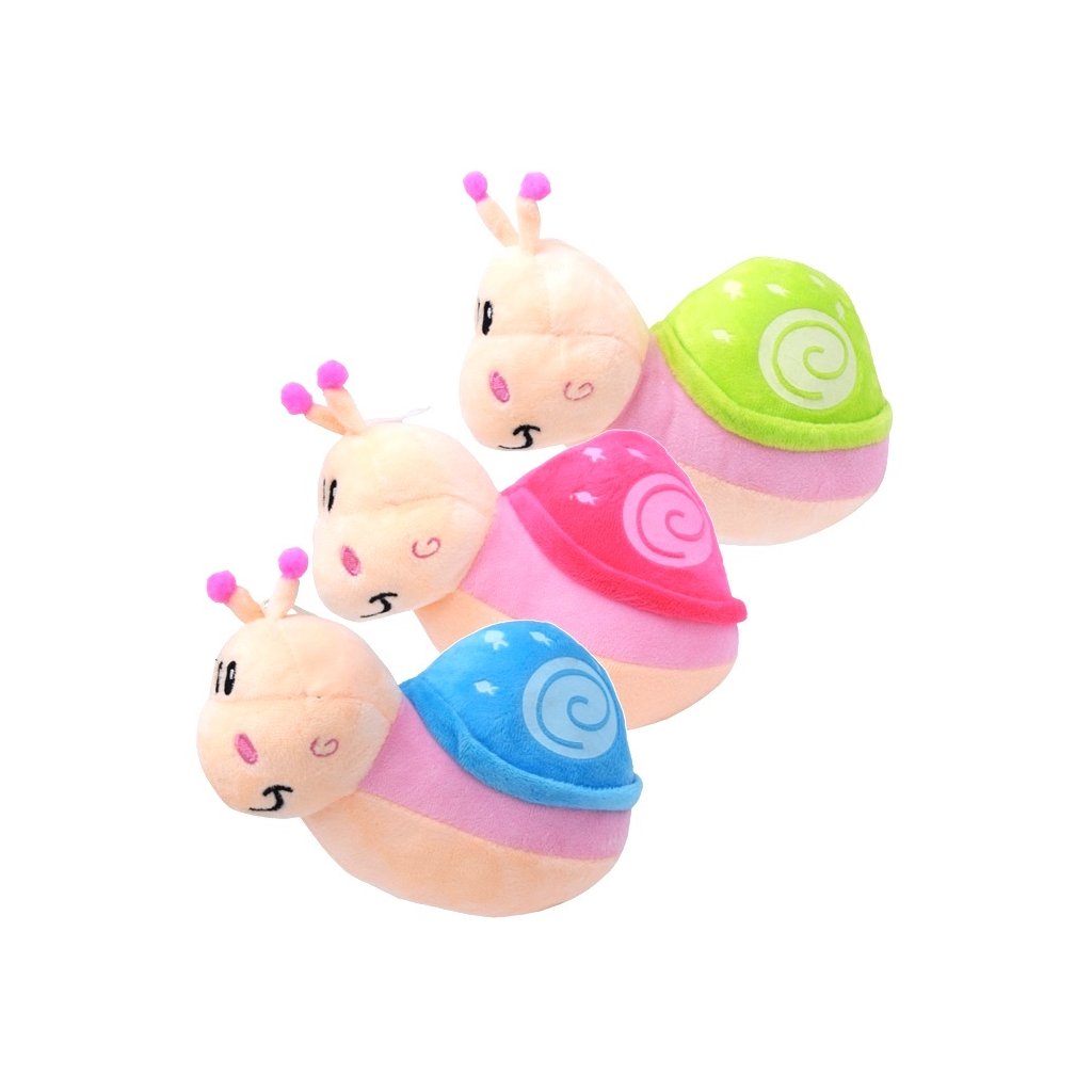 Roztomilý plyšový 23 cm slimáčik Lumír. Možnosť výberu z troch farieb - s ružovou, zelenou alebo modrou ulitou. Rozmer (cm)