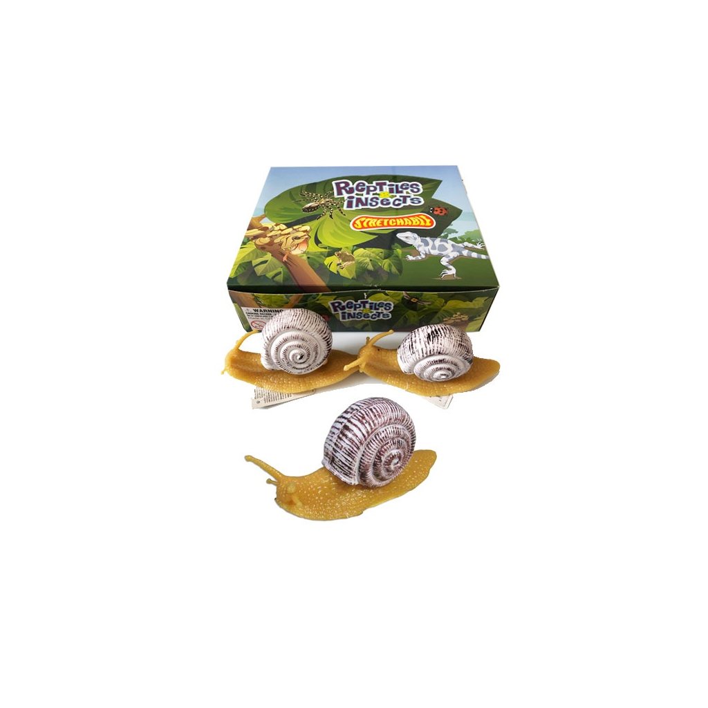 Slimák, 13 cm veľký s ulitou v zelenej, červenej alebo hnedej farbe, s telom z mäkkého prilnavého materiálu. Cena je za kus. Obchodnícke balenie je 12ks. ...