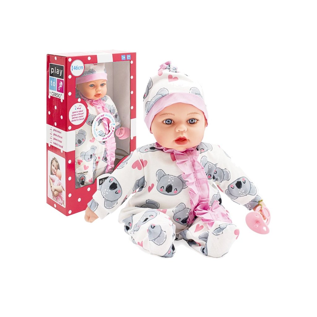 Krásna detská bábika Bibi od PlayTo, ktorá urobí radosť každému dievčatku Telo bábiky je vyrobené z mäkkého materiálu. Ruky, nohy a hlava sú vyrobené z gumy. Bábika je oblečená do oblečenia, ktoré sa dá ľahko vyzliecť a vyprať.Bábika má cumlík. Bábika je dlhá 46 cm. Bábika má modul, ktorý hovorí 4 jazykmi: poľsky, česky, slovensky a maďarsky.